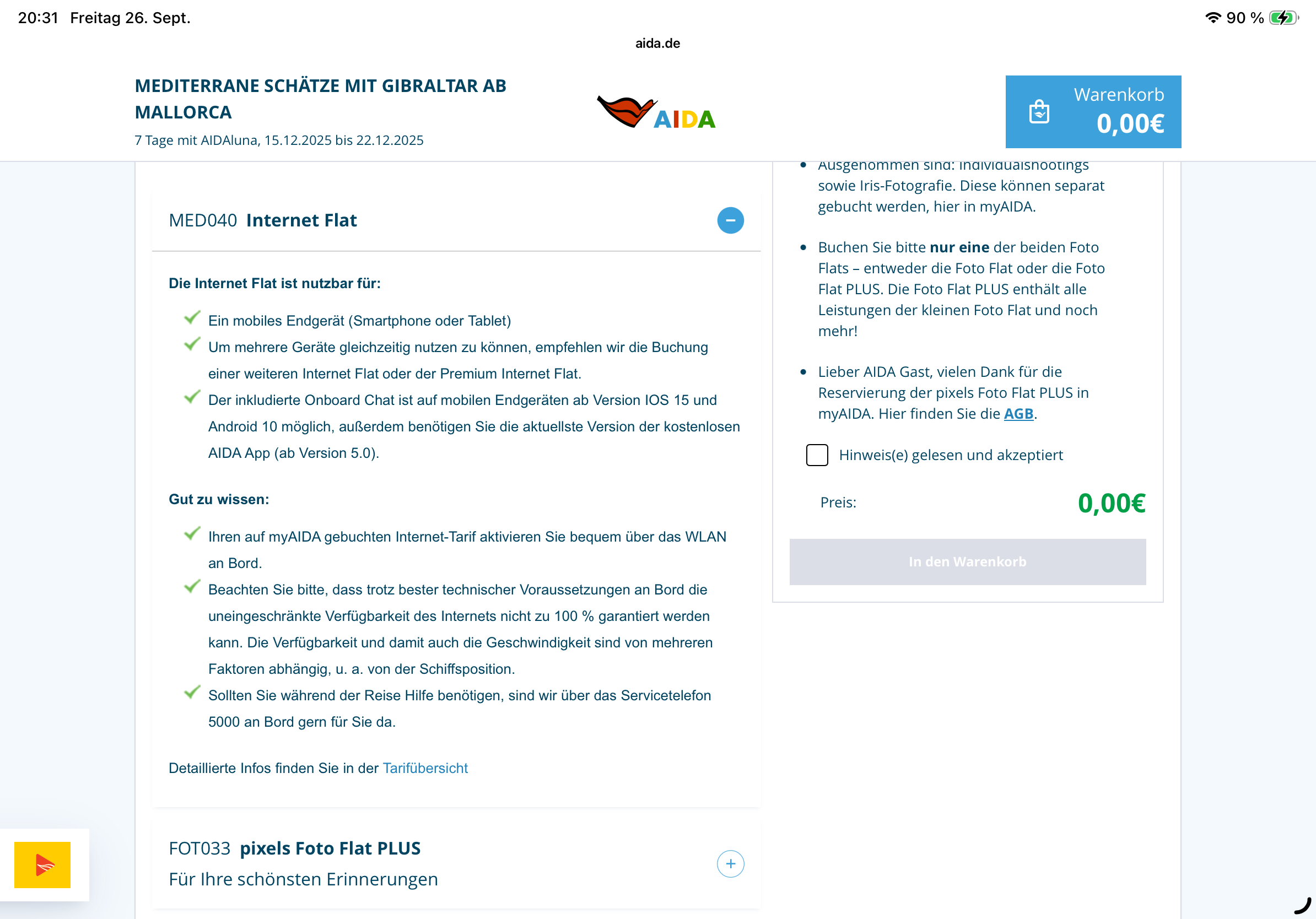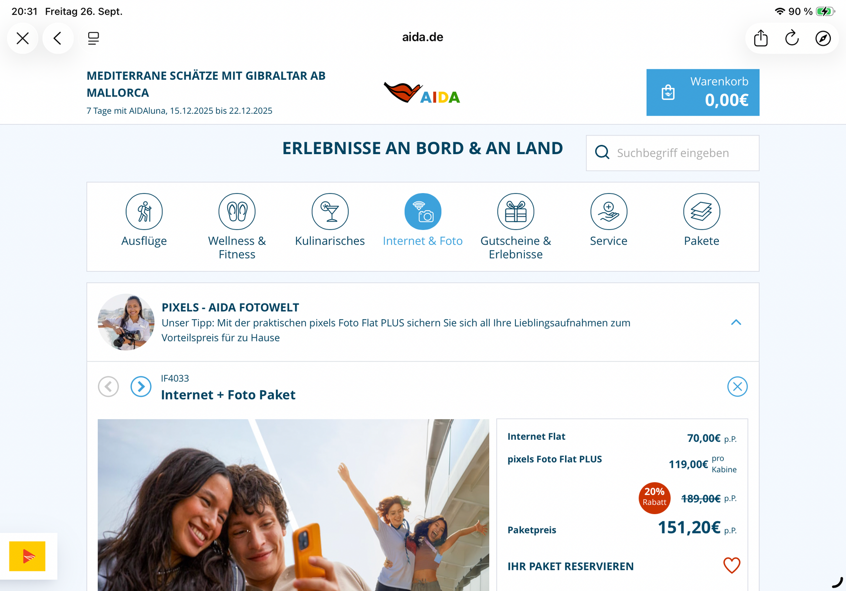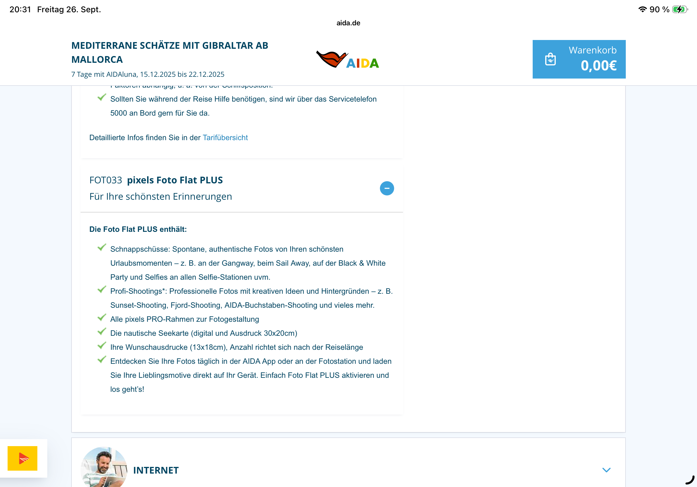 Was kosten die Bausteine denn einzeln für die Reise? Internet Flat 70 Euro sehe ich im Screenshot, was kostet die Fotoflat einzeln?