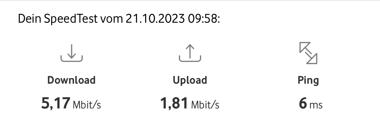 Anbei ein Screenshot von dem Standard-Google-Speedtest (sagt nicht so viel aus, reicht aber für die Schnelle und man braucht keine App oder Programm):