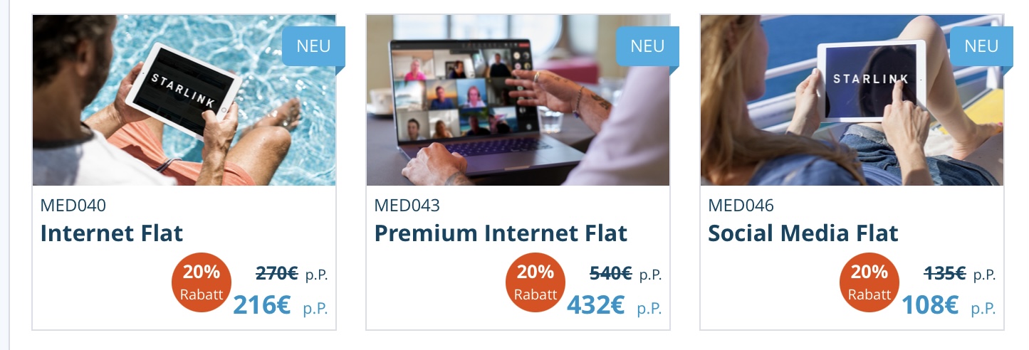 Für mich wäre aber Hauptgrund für das Premium Internet die Priorisierung, bzw. bessere Performance. Da bin ich mir noch nicht so sicher, ob das wirklich den großen Vorteil bringt. Werde das jetzt noch mal auf der Metropolentour testen, wobei da aufgrund der Starlink Abdeckung die Performance eh besser sein sollte als auf der Transkaribik. Außerdem dürfte die Nutzung an Bord geringer sein, kein TV Stream für das Fernsehen an Bord, Mobiles Internet im EU-Roaming an den meisten Tagen, usw.