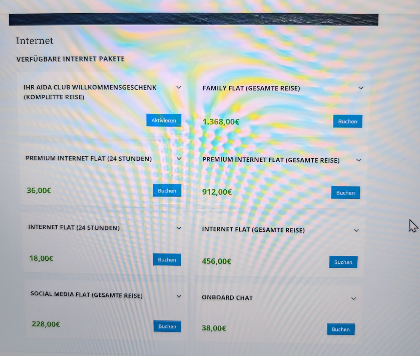 Über MyAIDA könnt ihr ein Internetpaket dazu buchen, geht übrigens auch tageweise über das Bordportal. Es kann allerdings nur ein Gerät online sein. Der Wechsel ist ganz einfach.