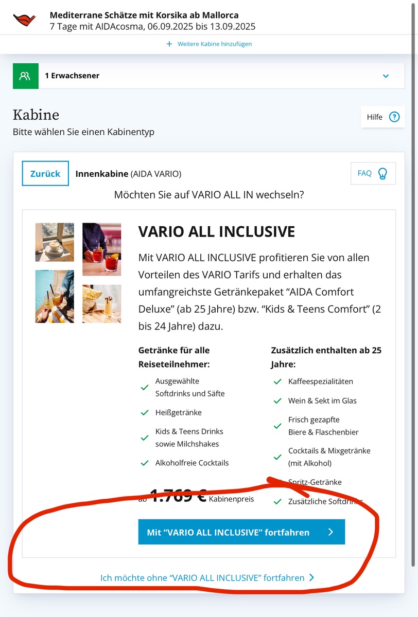 Das mit der Anzeige der Kabinen bei Premium habe ich in der neuen Ansicht auch manchmal nicht gefunden.