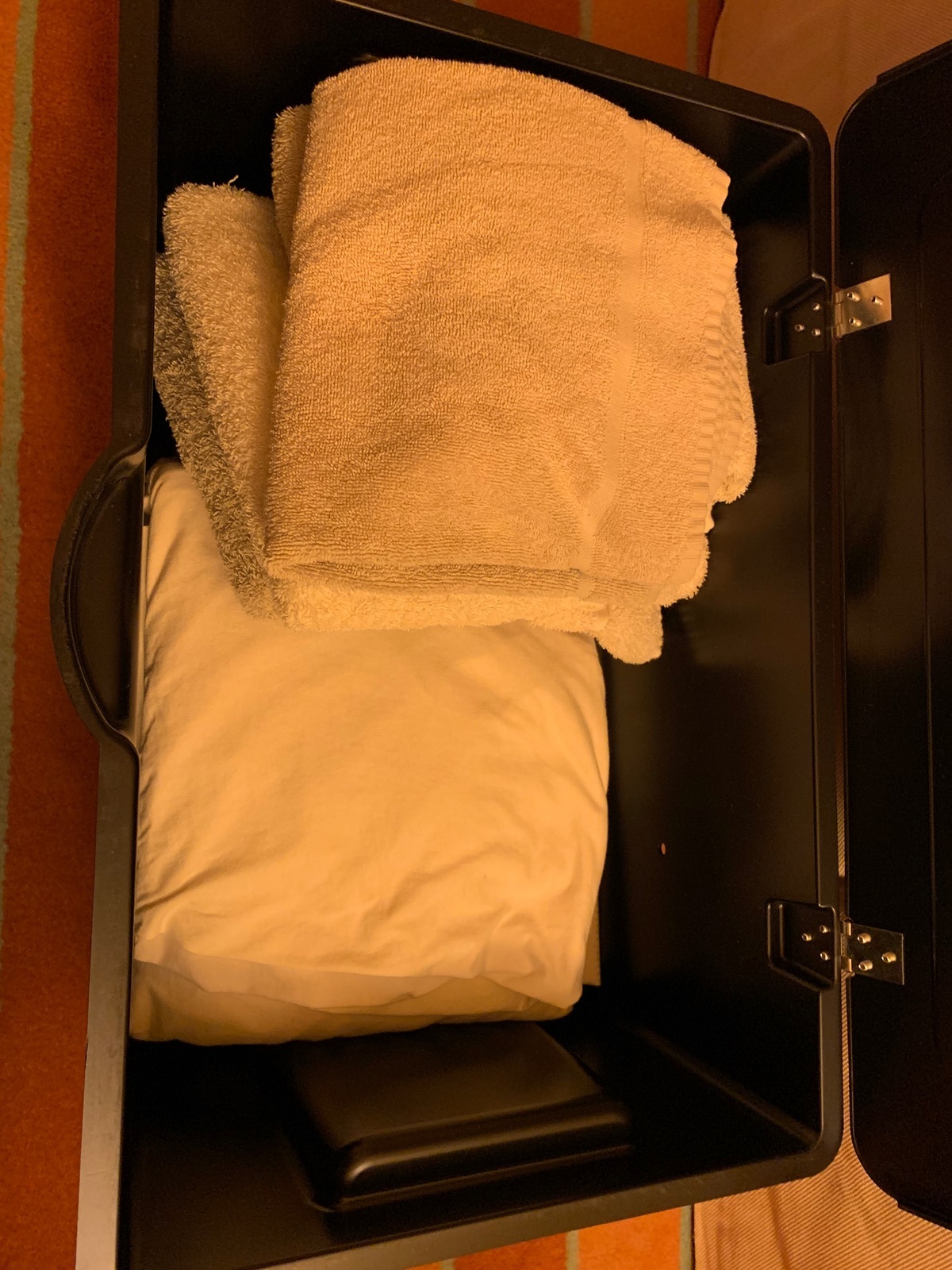Der blaue Beutel lag auch bei unserer letzten Reise am Anreisetag im Schrank. Nachdem ich ihn für den Wäscheservice genutzt hatte, wurde allerdings kein neuer Beutel ins Regal gelegt.