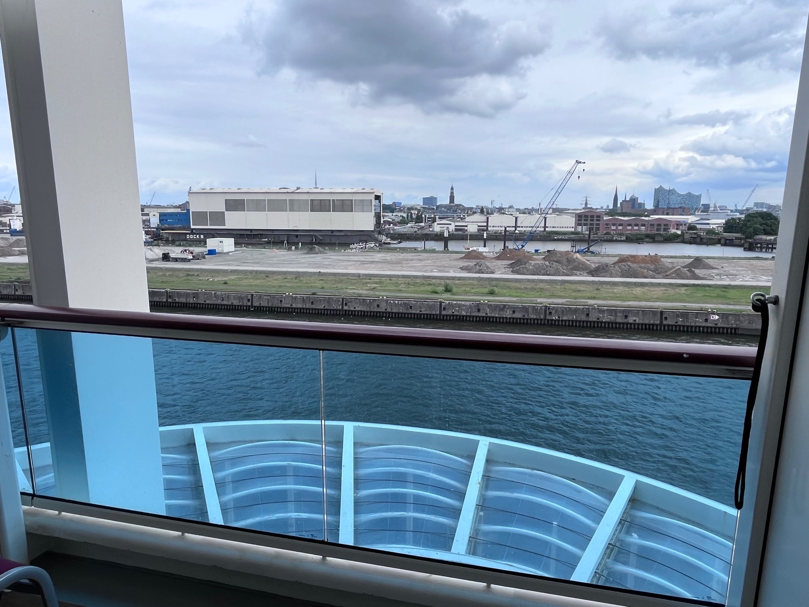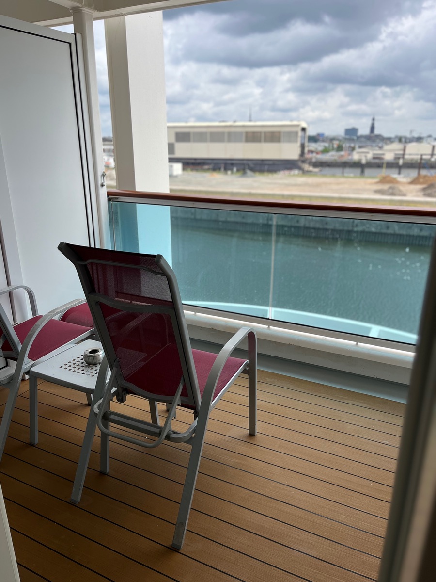 Unterhalb vom Balkon ist die Überdachung von Deck 8. Mich hat es nicht gestört, weil man auf Grund der Höhe gut darüber hinweg gucken kann. Ein Deck weiter unten stelle ich mir das nicht so schön vor.
