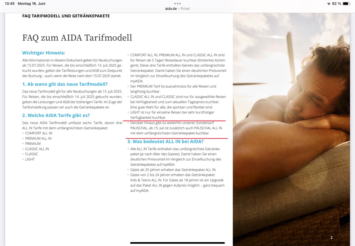 • RE: Neue AIDA Tarife für Buchungen ab 15.07.2025