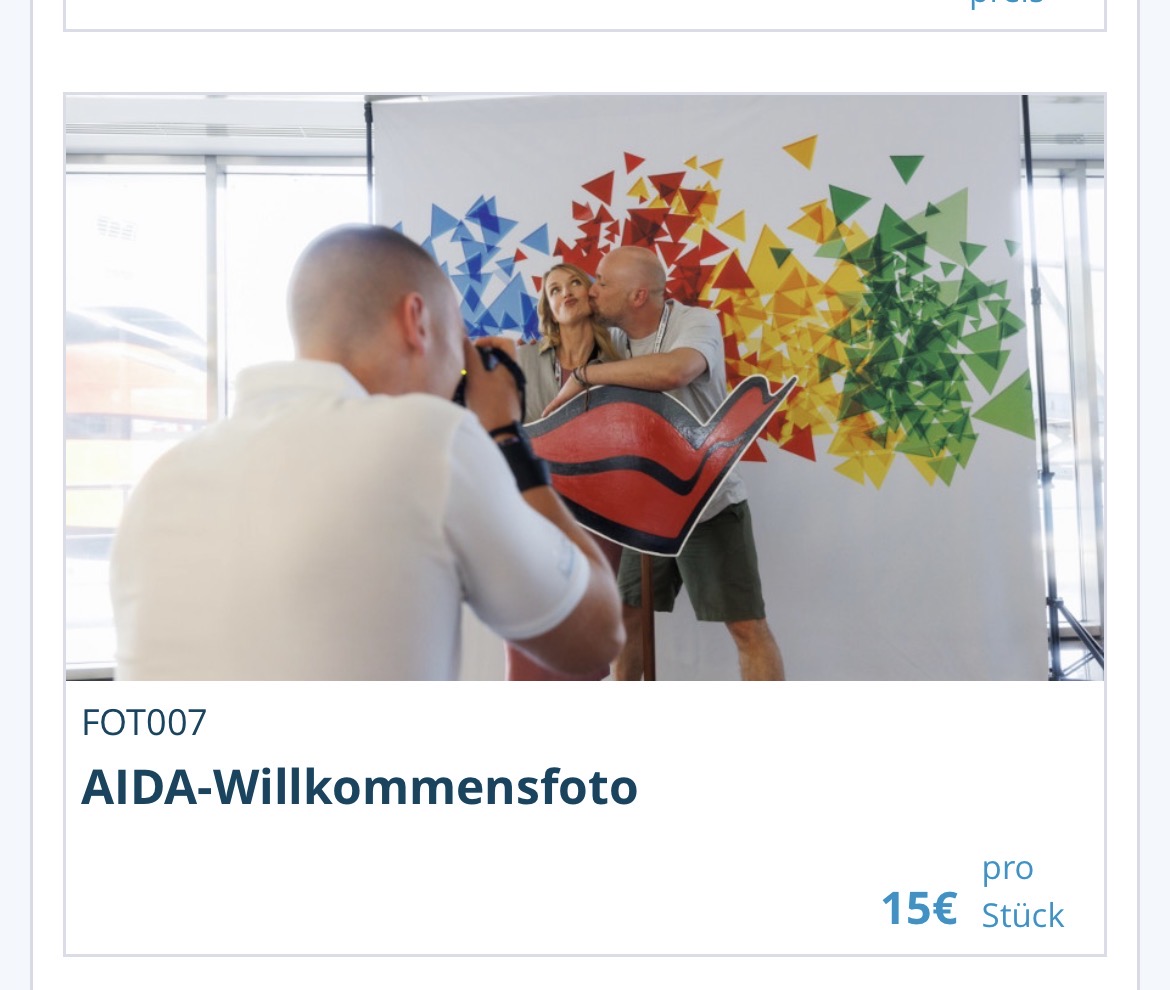 Vielen Dank für die schnellen Antworten. Dann schau ich mal vor Ort was stimmt. Ich war etwas irritiert, weil ich für unsere April-Reise das Begrüßungsfoto für 15€ buchen kann.