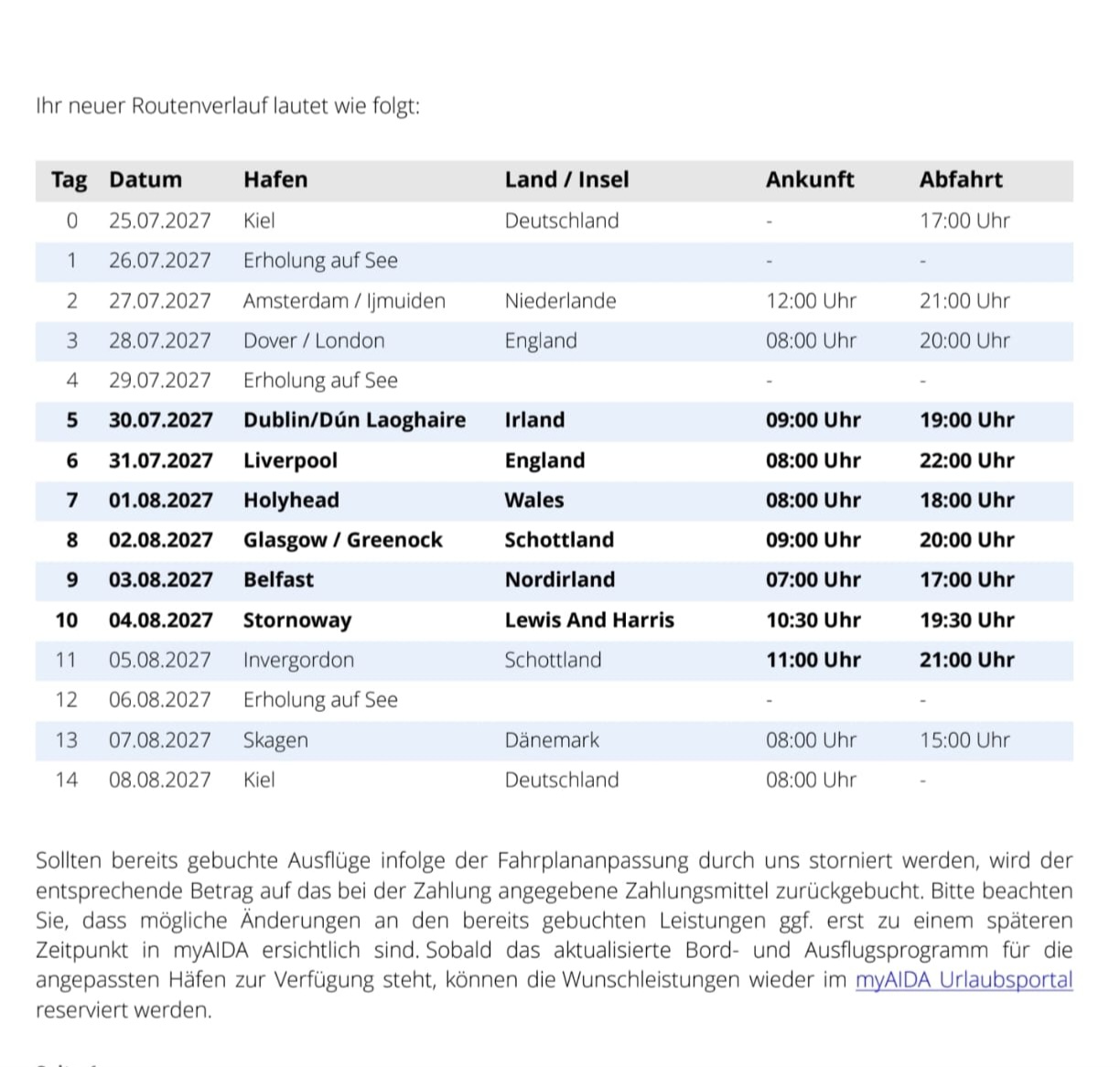 AIDAbella: Großbritannien & Irland ab Kiel | 14 Nächte | 25.07.2027 bis 08.08.2027