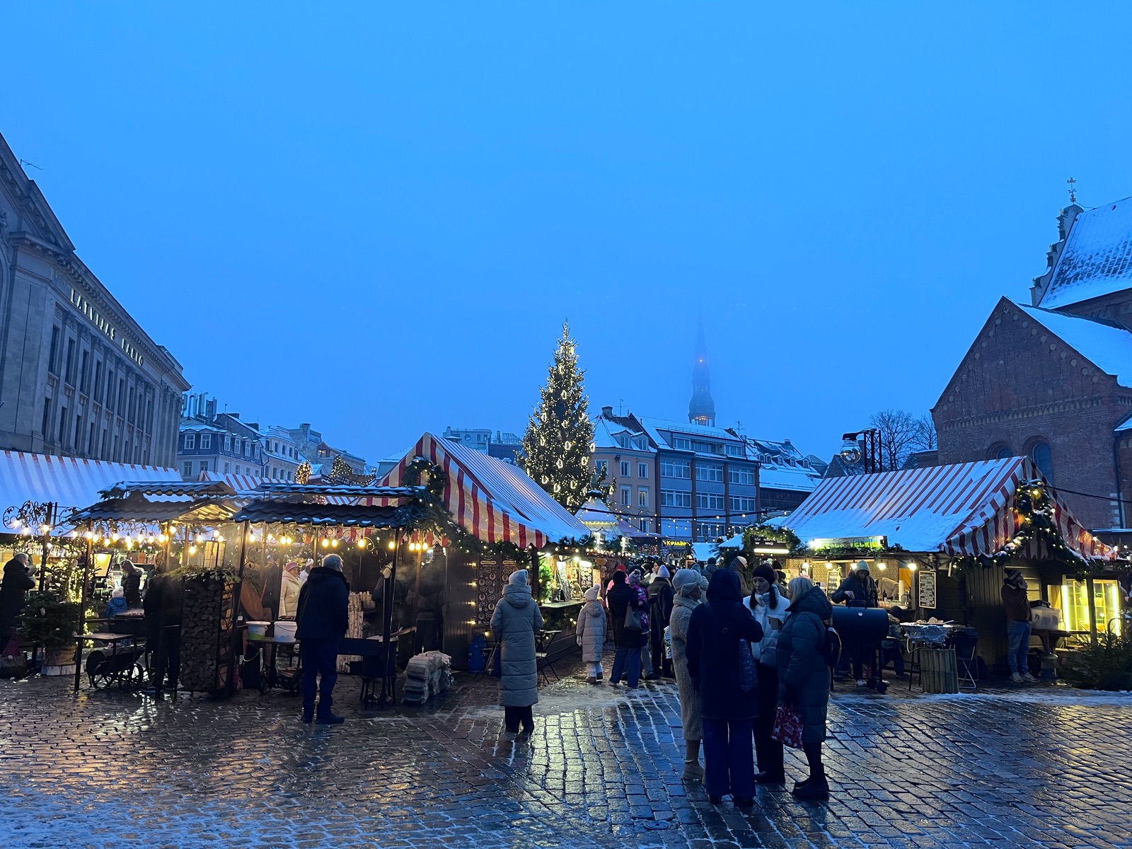 Heute in Riga lag dann tatsächlich Schnee 🤩 Zwar setzte im Laufe des Tages etwas Tauwetter ein. Aber so Temperaturen um 0 Grad sind einfach herrlich, wenn man auf dem Weihnachtsmarkt ist. Und der war wirklich großartig!