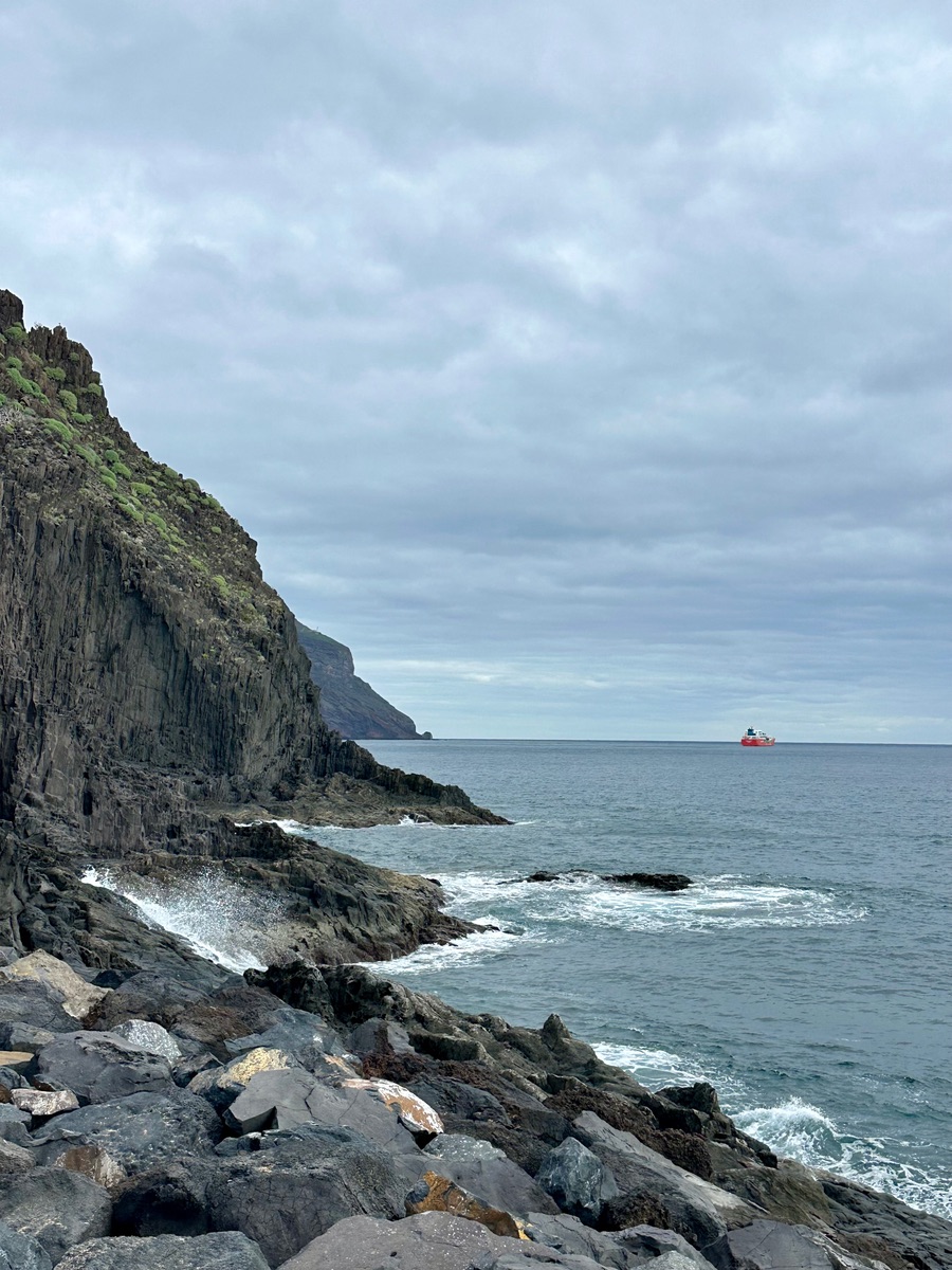 Kofferabgabe war zum Glück schon früh möglich und so haben wir uns danach erstmal getrennt - der Kabinenteiler wollte trocken bleiben 🤣.Ich bin dann für kleines Geld (1,25€) mit dem Bus zum Teresitas-Strand gefahren.