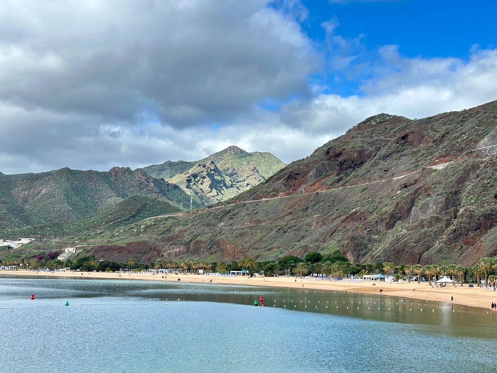 Kofferabgabe war zum Glück schon früh möglich und so haben wir uns danach erstmal getrennt - der Kabinenteiler wollte trocken bleiben 🤣.Ich bin dann für kleines Geld (1,25€) mit dem Bus zum Teresitas-Strand gefahren.