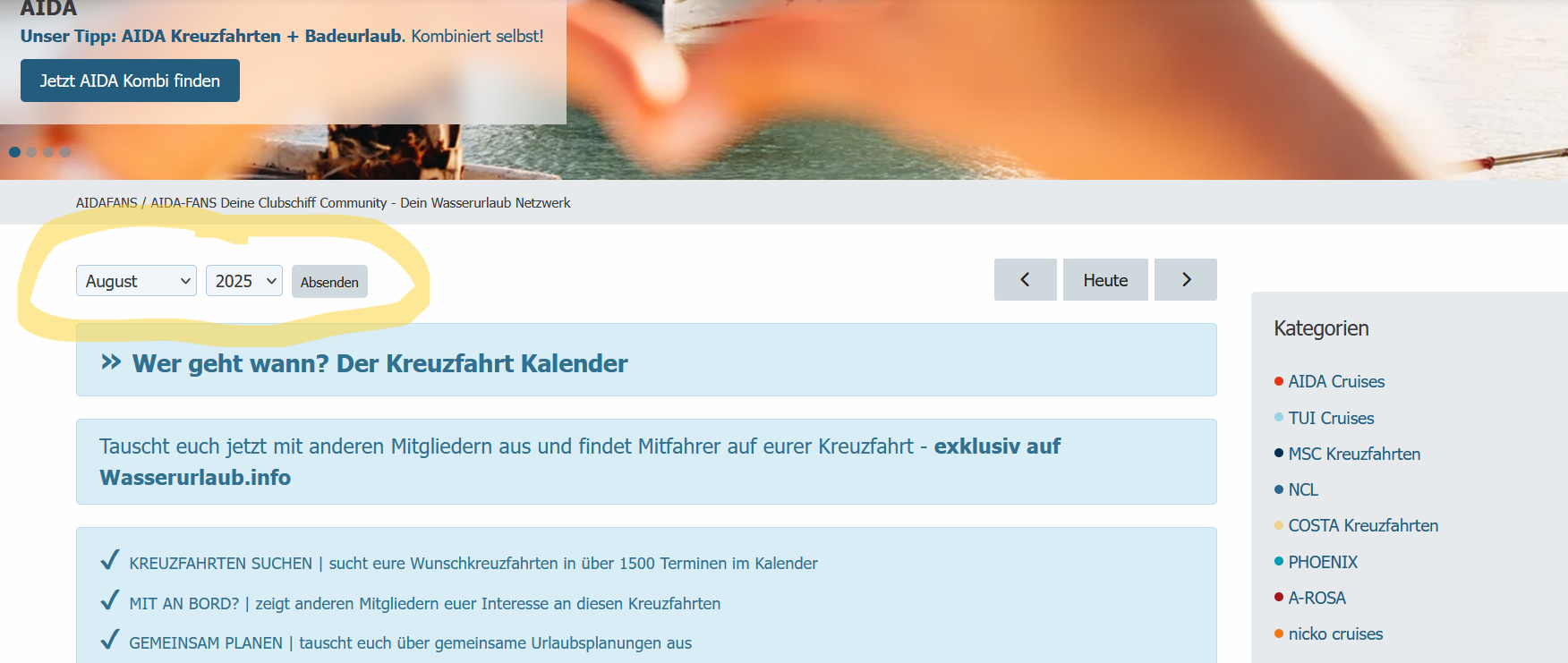 Schade, dass die zwei genannten Platformen hier nicht erlaubt sind. Ich erlebe immer wieder, dass Wasserurlaub.info gar nicht bekannt ist. Es würde meiner Meinung helfen, hier wieder mehr Traffic zu erzeugen, wenn man Referenzen auf fb und WA zulässt. Und evtl. weitere URLs reserviert, z.b. mit Aida-Bezug. Eine „.info“-Domain wirkt unseriös, da selten genutzt. Besser wäre eine „.de“