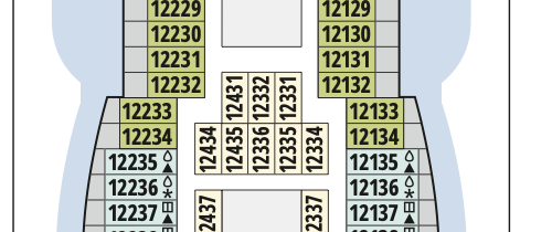 Es ist eine Innenkabine auf Deck 12, in der Nähe des vorderen Treppenhauses..