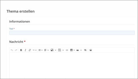 Klickt einfach auf die dunkelblau hinterlegte Schaltfläche „+ Neues Thema“, wie auf obigem Screenshot in der rechten oberen Ecke erkennbar ist.