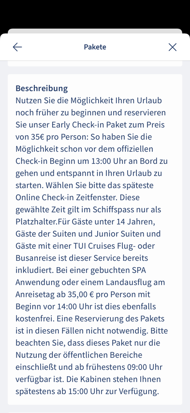 Mein Tipp ist übrigens nicht die erste Check in Zeit um 13:00 zu wählen, weil die Schlange dann endlos ist. Hinzu kommt, dass TC die Check in Zeit nicht immer kontrolliert und dann die Leute mit späterer Zeit auch noch in dem 13:00 Fenster eingecheckt werden.