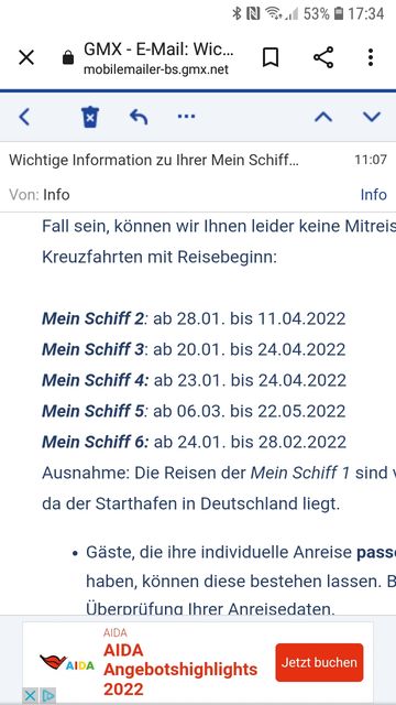 Die Reise mit der MS 2 ab 17.01. ist abgesagt - siehe Umroutungs-Thread. ?(