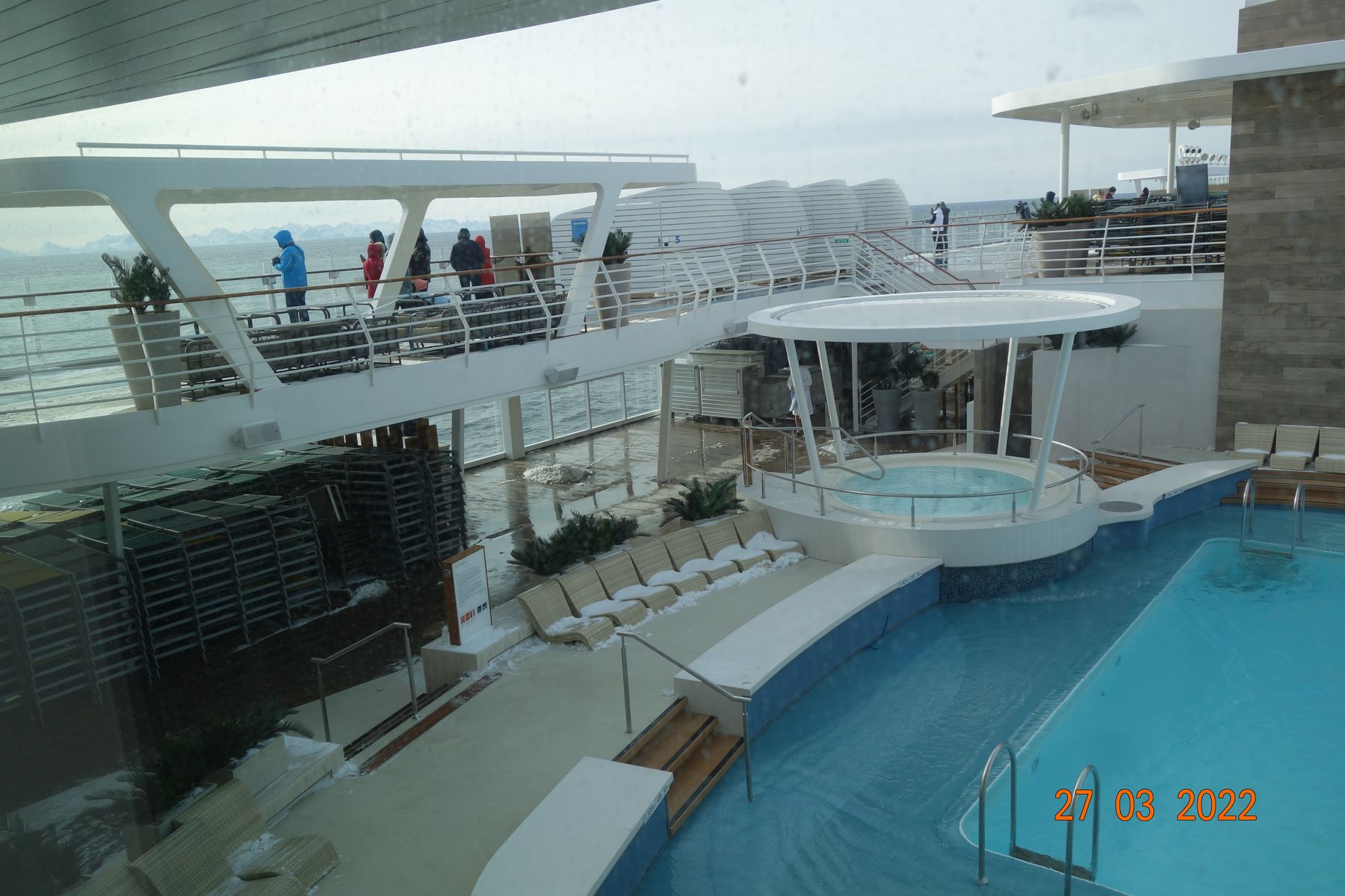 Kommt darauf an, was einem wichtig ist. Bei AIDA hatte ich bisher bei allen Reisen das Gefühl, dass ich als zusätzlicher Umsatzbringer ein gern gesehener Gast in den diversen Bars war. Das fing bei der Gestaltung der Bar an, die Sitzgelegenheiten erscheinen mir hochwertiger als bei MS, die Anordnung der Plätze eher auf Wohlfühlen und Verweilen ausgelegt. Kleinigkeiten wie ausreichend Decken in den Außenbars sowie ein schneller Service rundeten das Bild ab. Bei der MS4 ein anderes Bild. Es war eine der ersten Reisen mit Vollauslastung und abends war nur mit viel Glück ein Platz in einer Bar zu ergattern. Wahrscheinlich auch aufgrund des durchwachsenen Wetters und der nichtvorhandenen Decken in den Außenbars. Hatte man einen Platz erwischt, saß man nicht unbedingt gemütlich da. Das hier öfter beschriebene gediegene Publikum schien gerade woanders zu urlauben, mir ist eher die kampftrinkende Familie (nein, kein Kegelclub) am Nachbartisch in Erinnerung geblieben. Service war wahrscheinlich auch wegen der Unmengen an georderten Getränken überfordert. Für mich geht die Gleichung deshalb nicht auf. Lieber kein AI, stattdessen Tischweinvernichter in den Restaurants und für mich mit Aufpreisgetränk ein schöner Platz in der Bar. Die Unterschrift schaffe ich dann auch noch.