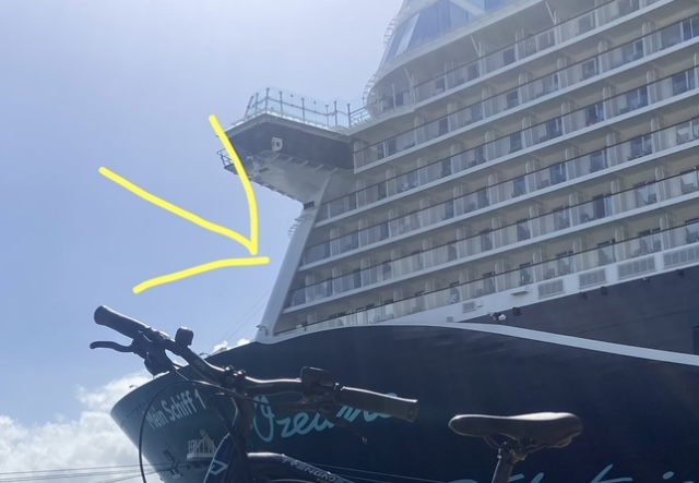 Leichte Sichtbedingungen durch die „Ausleger“ der Rettungsboote könnte sein und es gibt z.B. ganz vorne (z.B. MS1) Kabinen die haben zum Bug hin eine vollständige Stahlwand mit einem „überstand“ so das man nicht direkt seitlich nach vorne gucken kann.