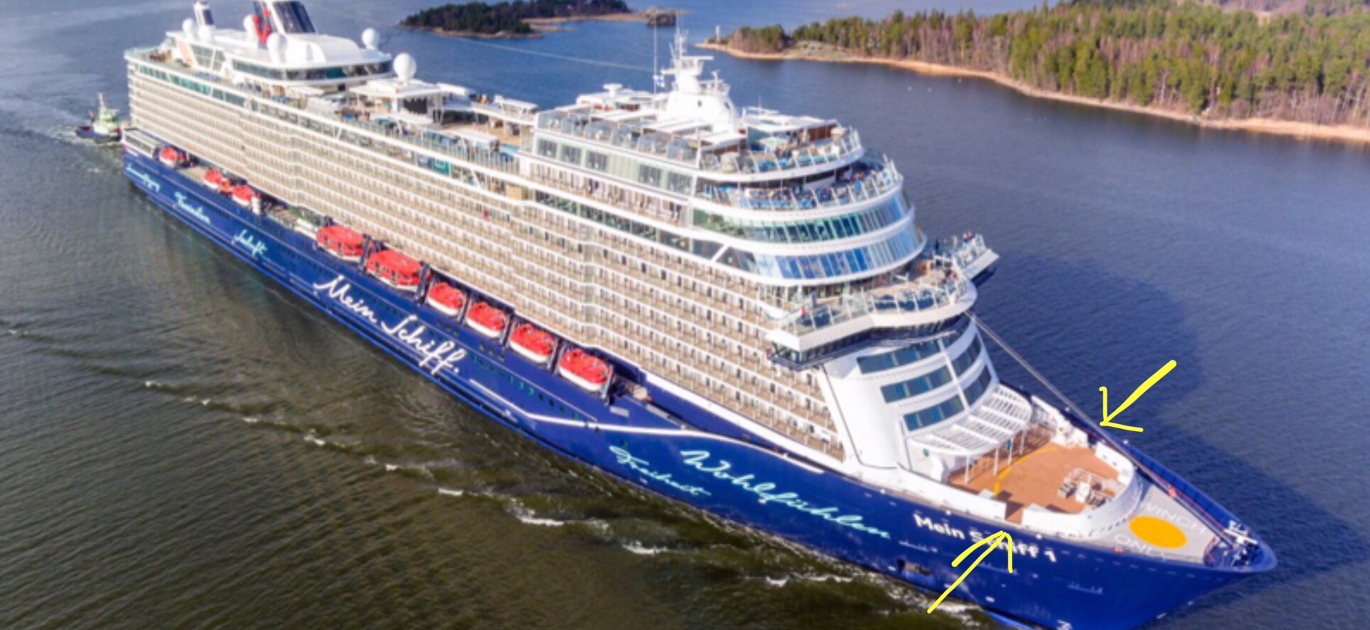 Frage, gibt es Keine öffentlichen Bereiche vorne an Deck, so wie bei Aida? Ohne Suite oder Zuzahlung für Bar oder Restaurant.