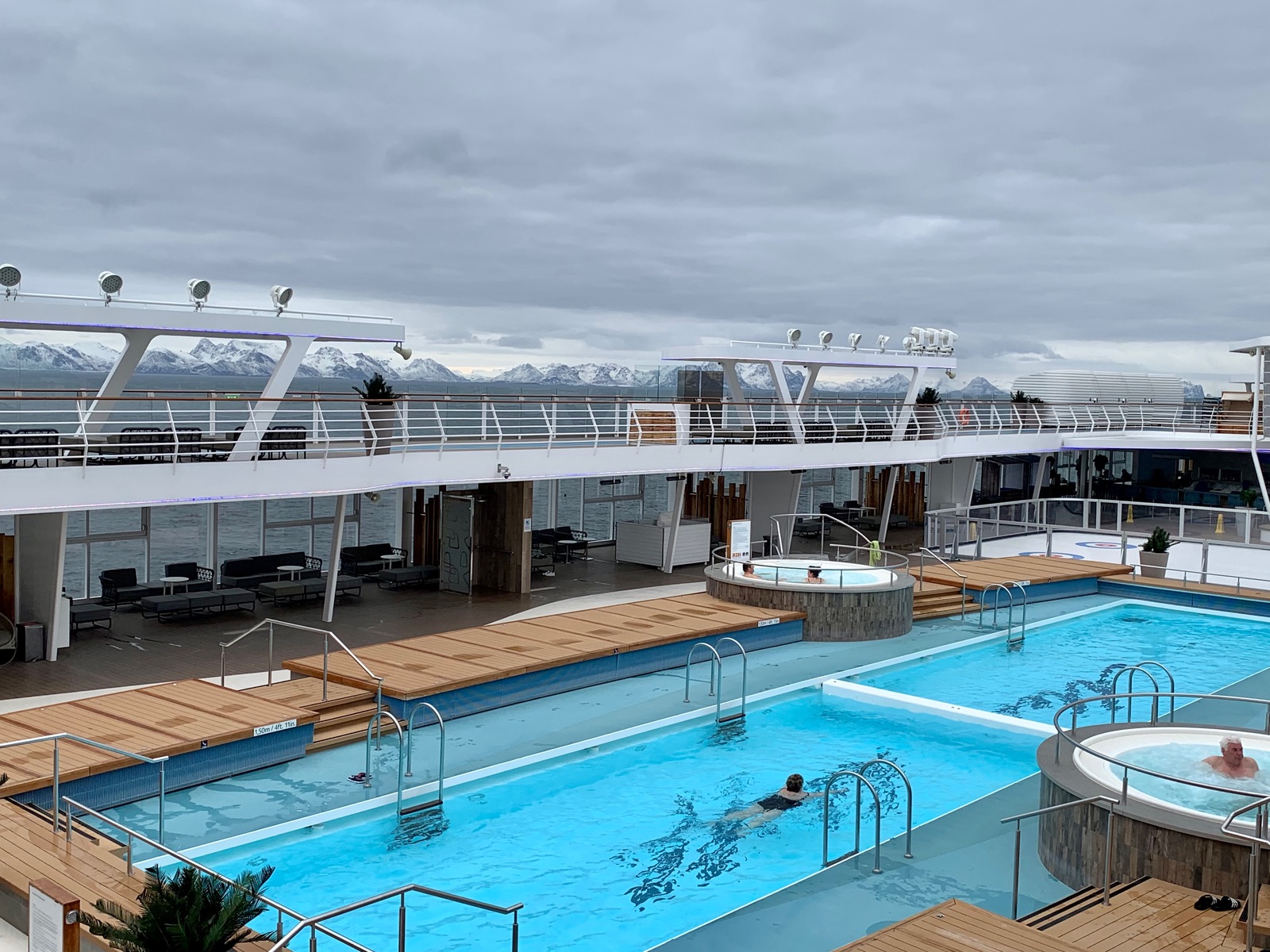 Bin nicht die Expertin für Mein Schiff- aber je nachdem, welche es ist, gibt es ja sogar einen kleinen Innenpool.