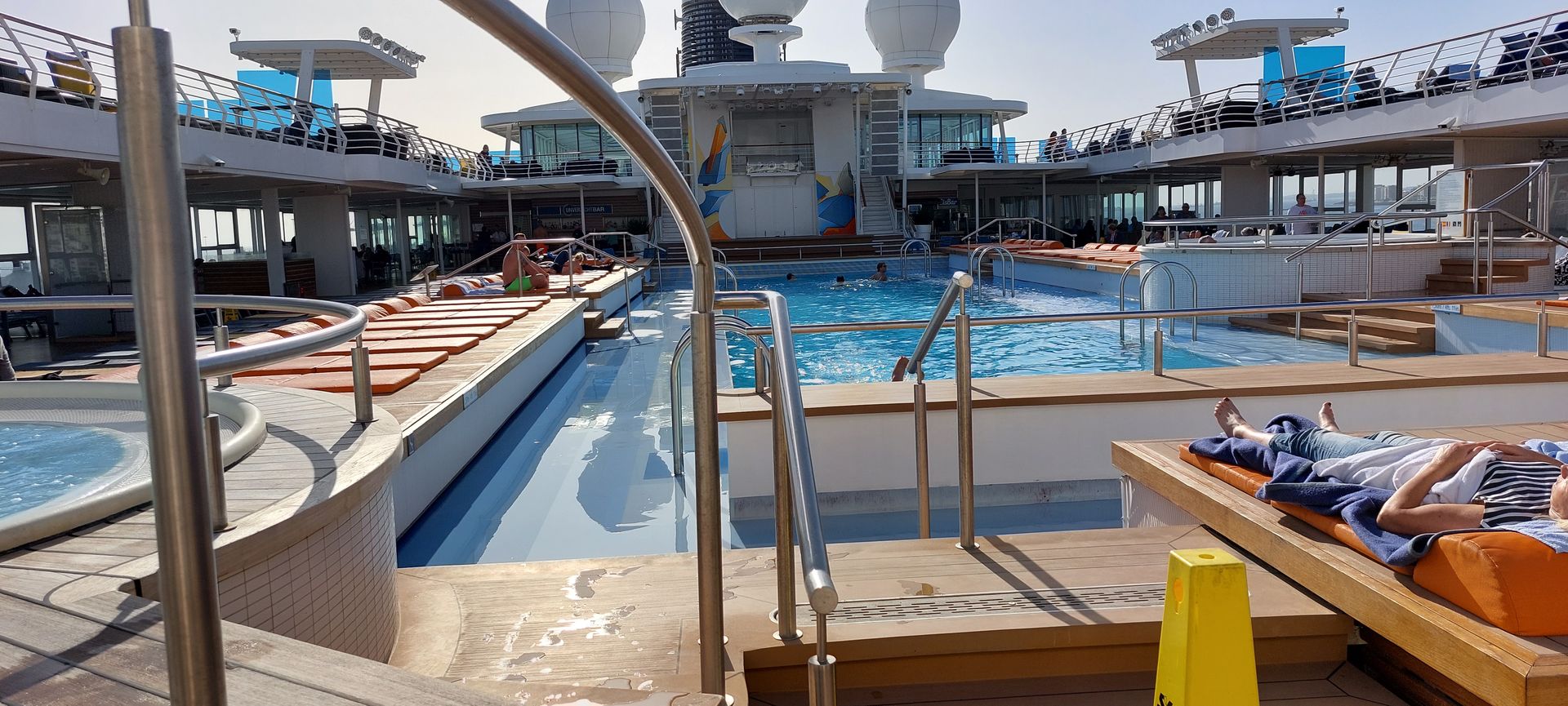 Schattenplätze rechts auf dem Pooldeck der "Mein Schiff 3"