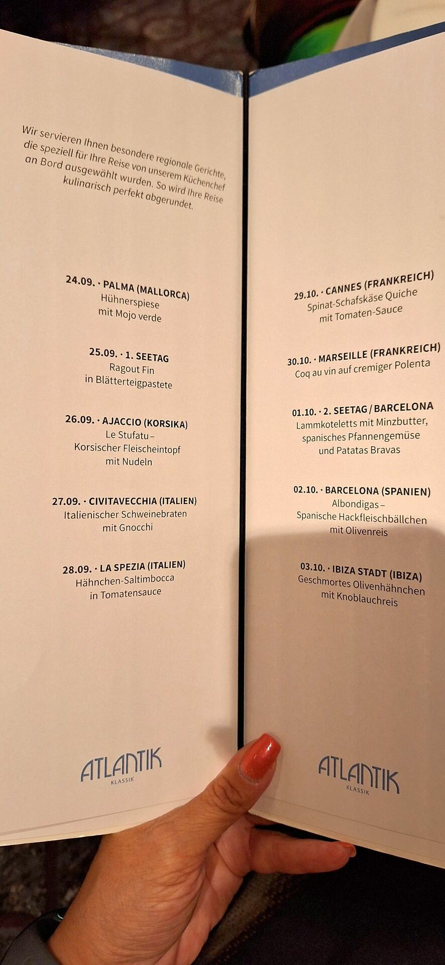 Ich finde es toll, dass die Speisen zu den Ländern passen, die angefahren werden :thumbsup: