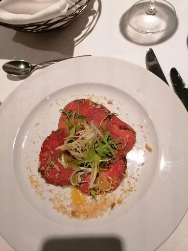 Hier ein paar Essensfotos :hunger: von den normalen Rest. der MS 1. Wir gehen (fast) nie in Zuzahlrest., das Essen fanden wir gut bis sehr gut, weil schmackhaft, gut angerichtet und :rechts: meistens gut temperiert :zwinker: Die Speisekarten der verschiedenen Rest. Medit. / Klassik sind identisch. Sie sind wohl auch identisch mit den anderen MS-Schiffen und wechseln monatlich ( :frage1: ) Zumindest hatten wir bei 14 Tagen nichts Gleiches...