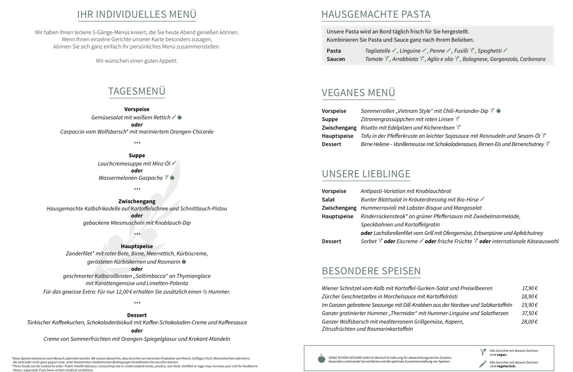 Im Atlantik Klassik gab es verschiedene Menüs. Feste Gerichte und Variable Gerichte.