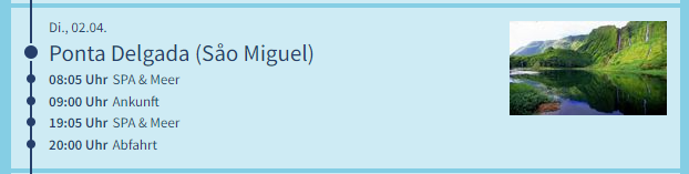 "MS 1" 20 Tage Transatlantik La Romana > Bremerhaven 04/23