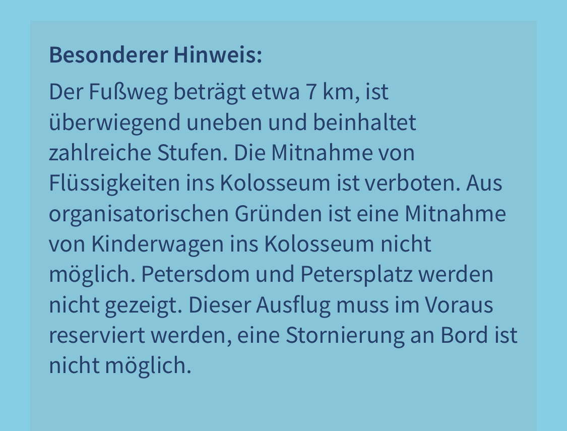 So sieht der Hinweis aus, wenn man einen Ausflug an Bord nicht stornieren kann.