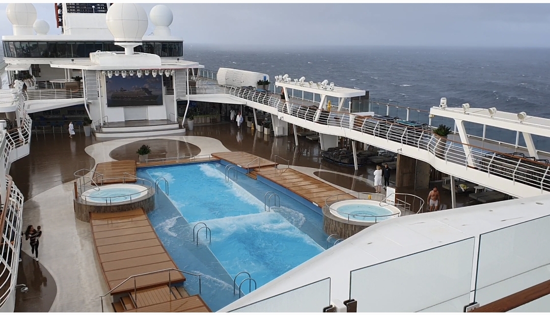 Wenn ich mich recht erinnere, kann der Pool in der Mitte bei starkem Seegang geteilt werden, damit das Wasser weniger schwappt.