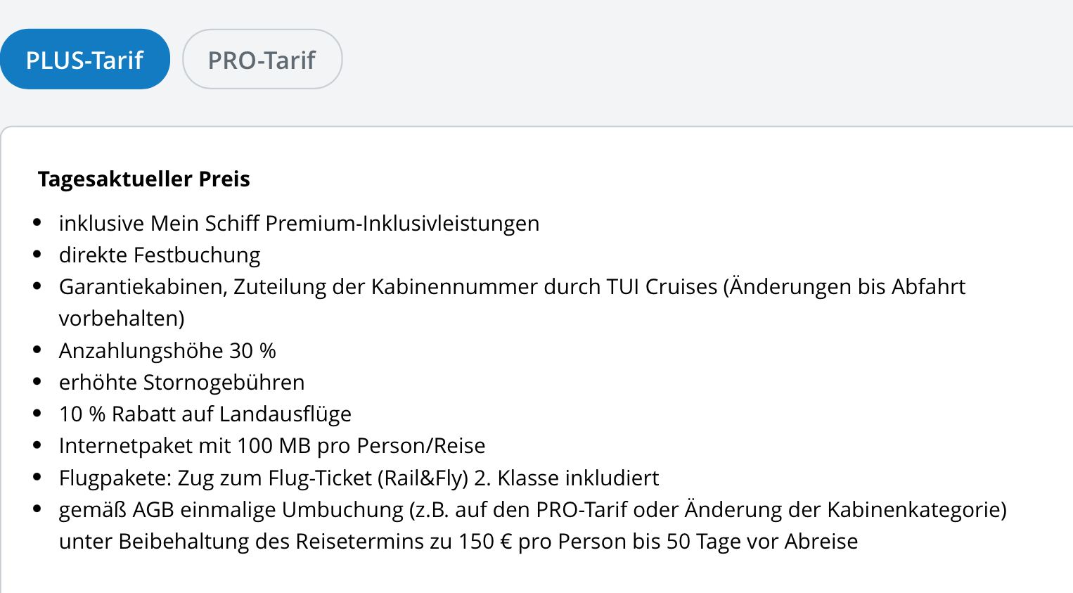Wenn ich mir die Reise am 26.1. bei TC anschaue gibt es nur den Pro Tarif im Balkon, kostet da im Moment 1459 € mit Anreisepaket