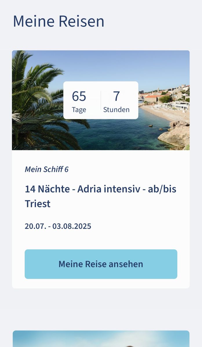 Dann kannst Du dann alle zukünftigen Reisen sehen, aber auch die vergangenen, wobei ich glaube, dass nur die angezeigt werden, zu welchen Du zum Zeitpunkt der Reise schon das Kundenkonto hattest. Ist zumindest bei mir und meinem Mann so. Ich habe mich eher angemeldet, daher kann ich auch eine Reise mehr sehen.