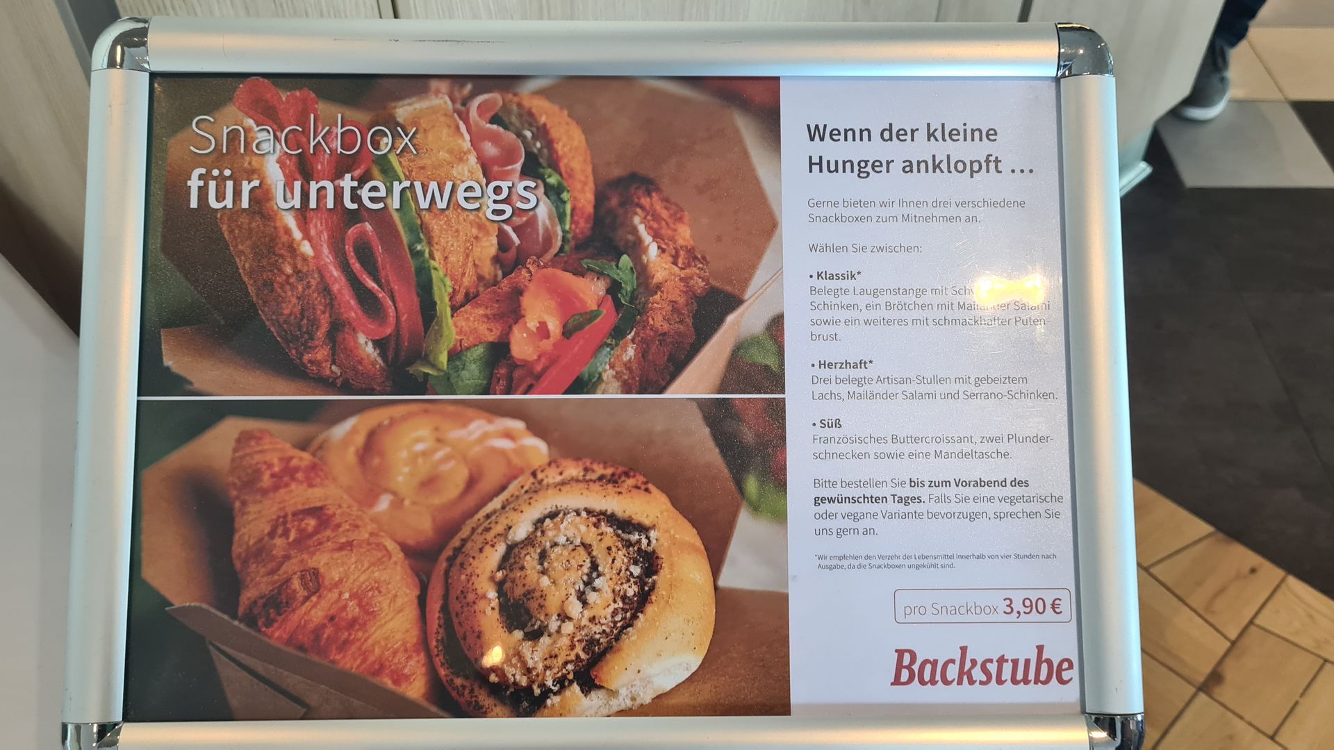Es gibt hier wie oben beschrieben die 3 verschiedenen Pakete ohne Obst und ohne Getränke zum Preis von 3,90 Euro.