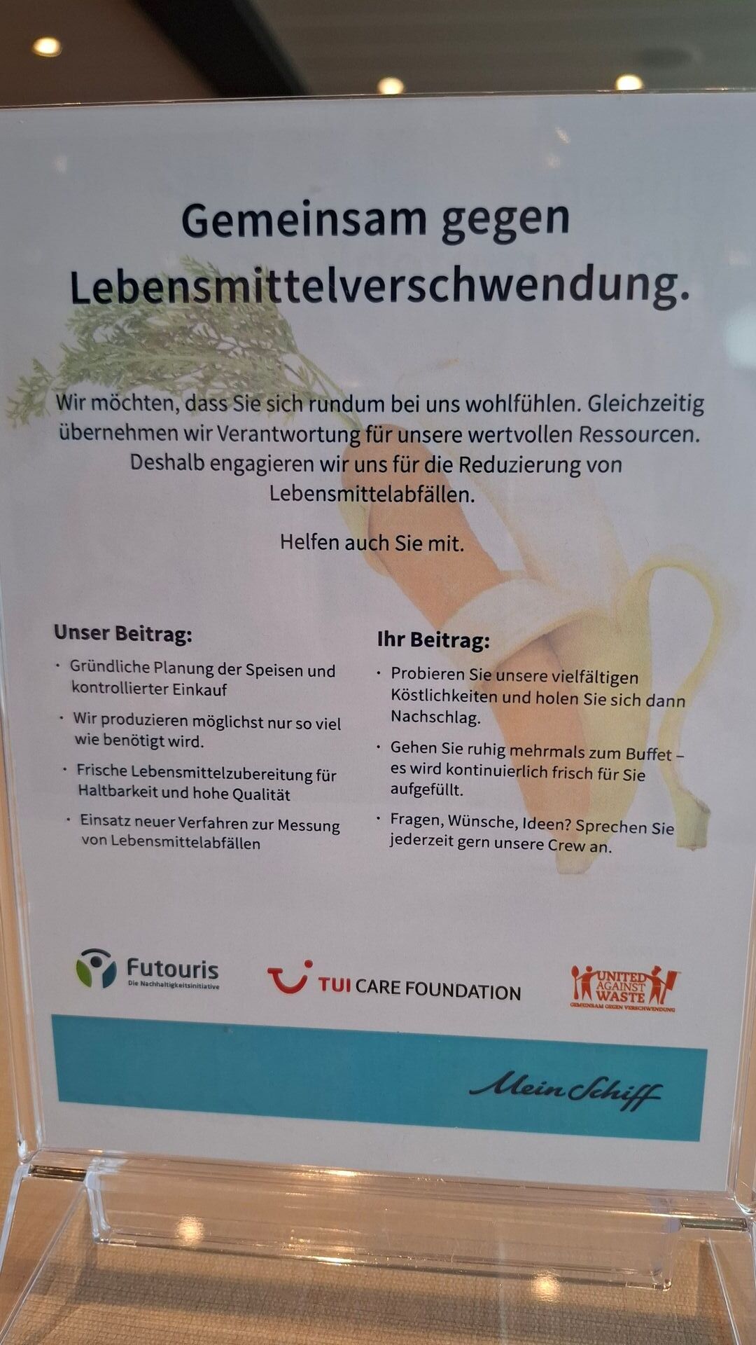 Dass Mein Schiff versucht Essensreste so gut wie möglich zu vermeiden, wird nicht gesagt