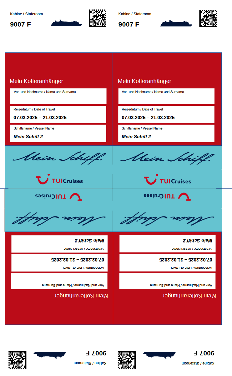 Aber wenn Du keinen Anhänger dabei hast, bekommst Du am Check In einen Blanko Anhänger, auf dem natürlich kein Code ist. Da wird nur die Kabine notiert.