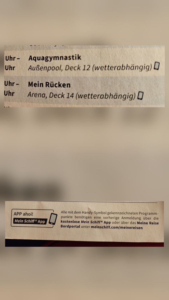 Die Reservierungspflicht steht jedoch deutlich im Tagesprogramm in der Bord-App drin. Und genau dort kann man sich dann auch gleich direkt anmelden, falls noch Plätze frei sind.