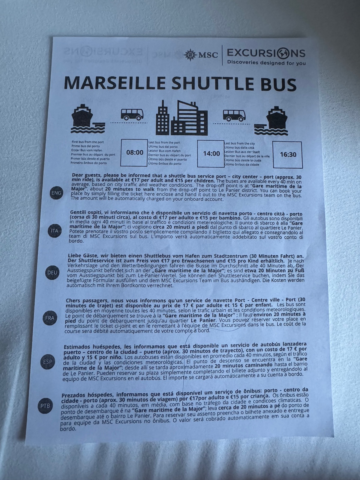 Da ich mir bereits daheim für jeden Hafentag vorab Informationen im Internet herausgesucht und zusammengestellt hatte wusste ich, dass man nicht unbedingt den Reederei-Shuttle in die Stadt hinein buchen muss.MSC bietet einen Shuttlebus für 17 €/Pers an