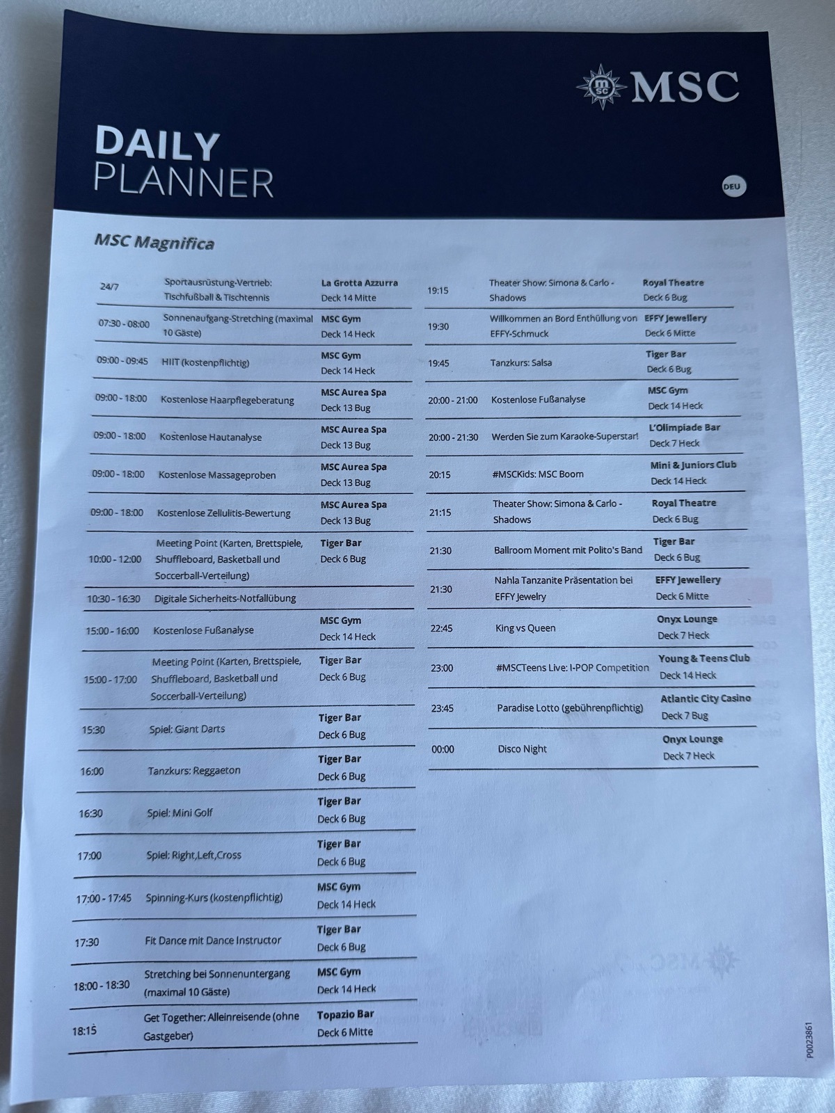 Ich würde für ein Treffen den 08.01.26 ( erster Seetag ) um 11 Uhr Bordzeit auf Deck 7 im Card Room vorschlagen.
