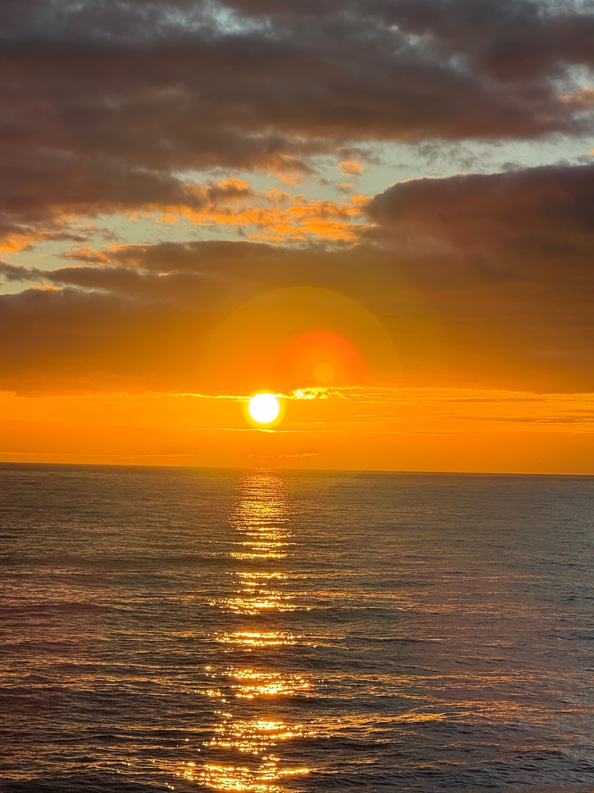 Das Schiff schaukelt lediglich ein ganz klein wenig, wohl aber nur, damit wir überhaupt bemerken, dass wir uns auf einer Seereise befinden.Den Sonnenaufgang am heutigen Morgen haben wir vom Außenbereich des Deck 13 wunderbar miterleben und fotografisch festhalten können.