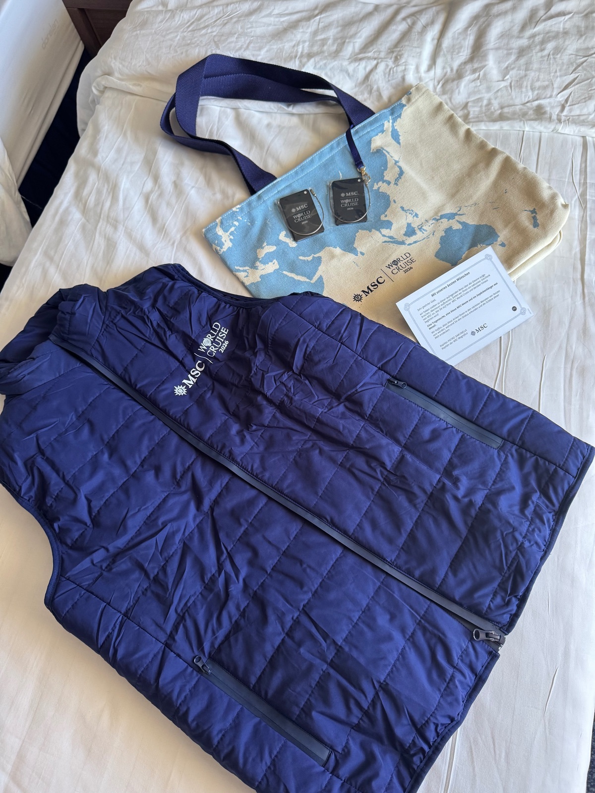 Die alleinreisende Dame an unserem Abendessentisch war 2023 bereits mit MSC auf Weltreise und berichtete, dass damals 980 Crewmitglieder anwesend waren, während es nunmehr 1100 sind.Auf die max Passagierzahl (es könnten 2500 mitreisen, wieviele wir tatsächlich sind, habe ich noch nicht erfragt) gesehen, doch ganz ansehnlich.