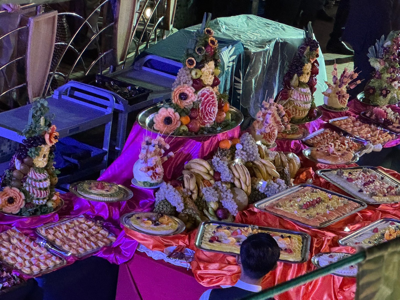 Der weitere Abend lief unter dem Motto „Tropical“ und dazu tanzte und feierte man, genussvoll umrahmt mit einem Tropical-Buffet, auf dem Pooldeck in die laue Nacht.