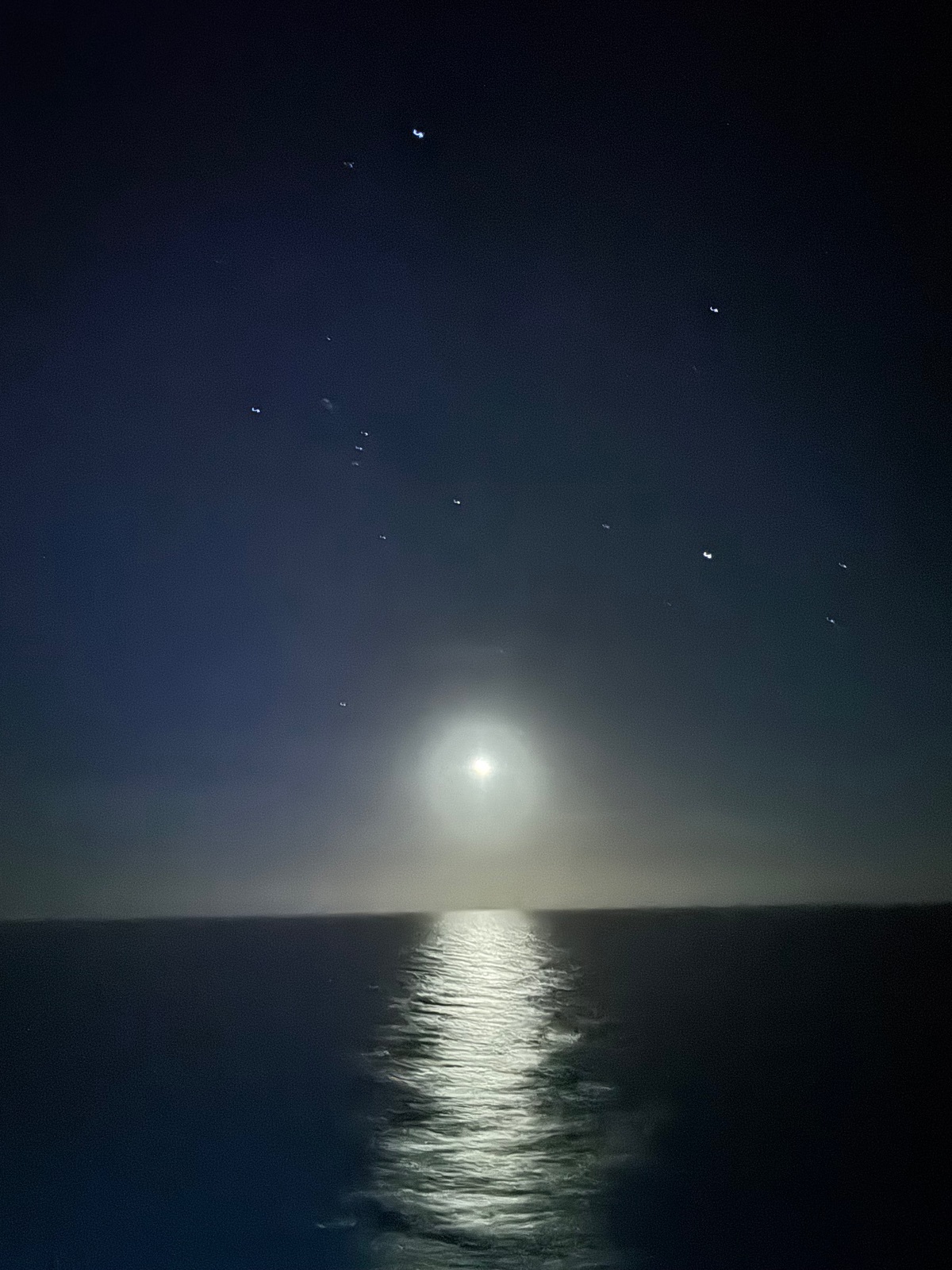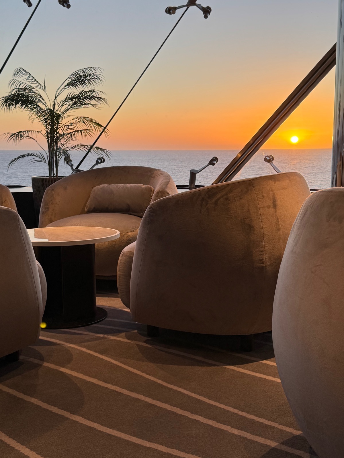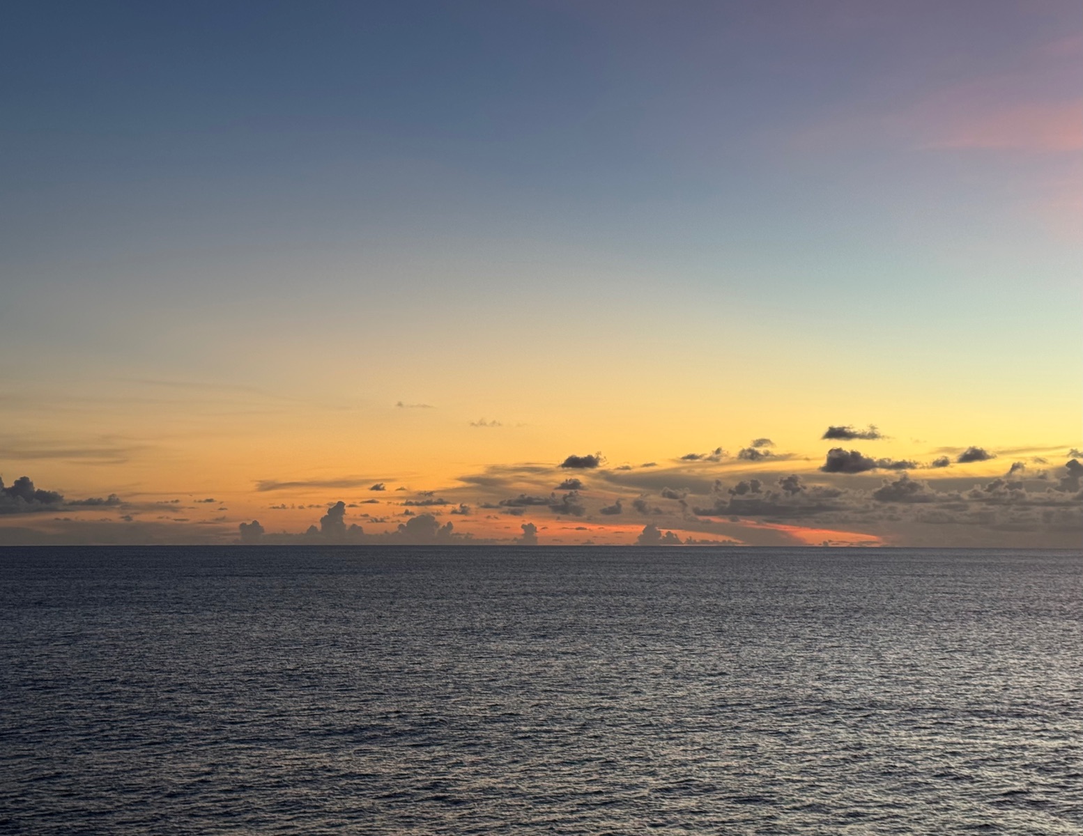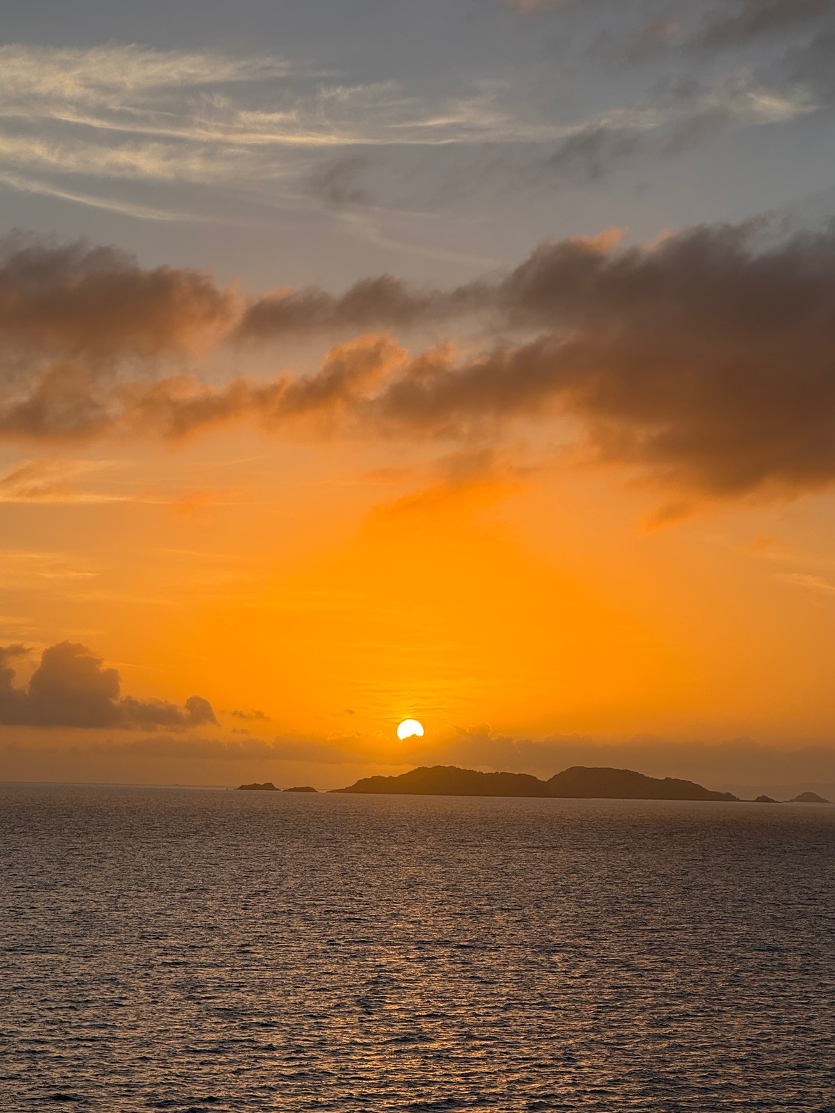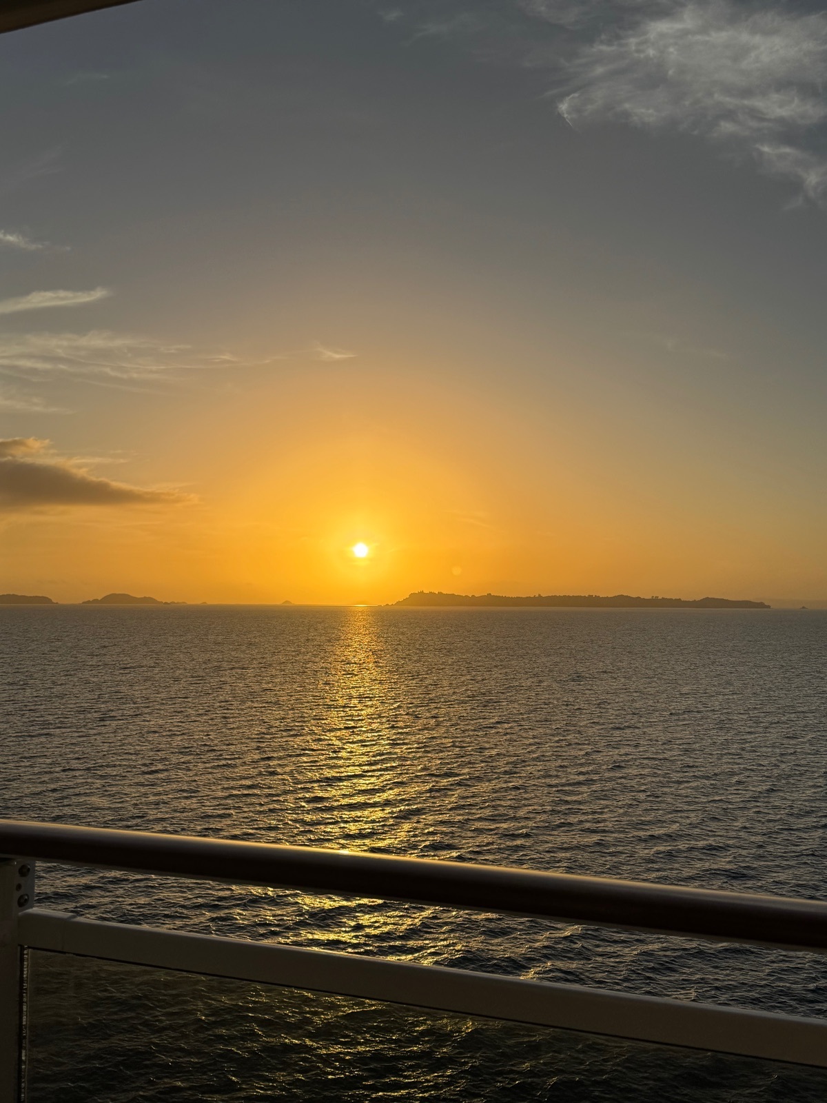 Das Abendrot, welches wir vom Kabinenbalkon noch zwischen Abendessen und Show schnell angeschaut haben, war heute auch wieder ein Farbenspiel sondergleichen.