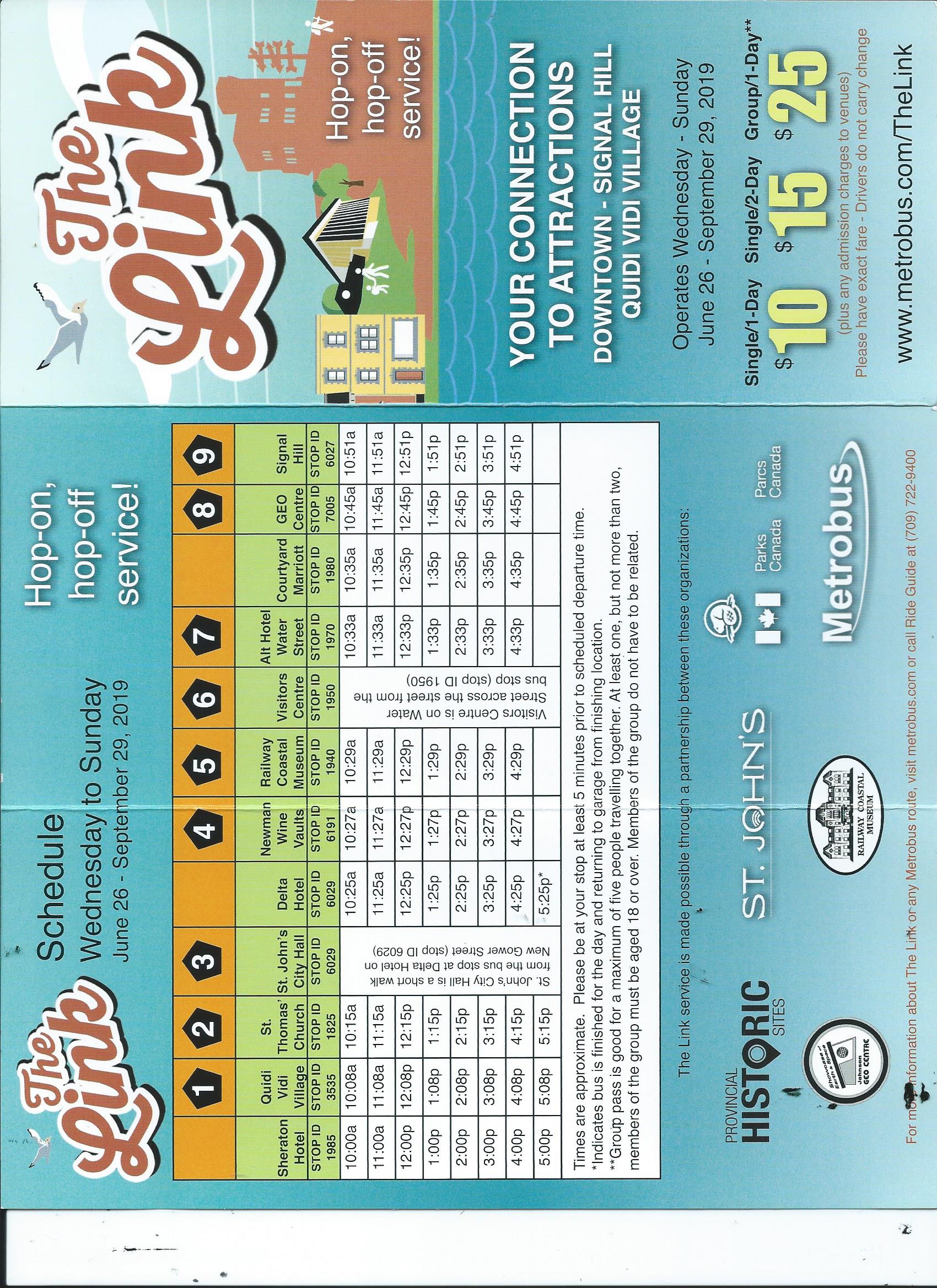 Danke, das mit dem Bus "The Link" hatte ich noch gar nicht gesehen. Passt perfekt, fahren dann damit auf den Hill und dann sehen wir mal weiter, ob wir laufen oder damit wieder zurückfahren. Er kostet 10 CAD (in bar) oder 2,50 Einzelstrecke. Fährt laut Internet von Mittwoch - Sonntags