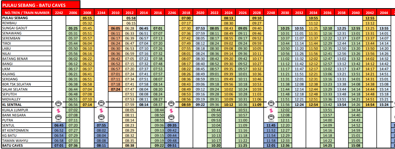 Deshalb sind wir am überlegen, mit dem KTM zu den Höhlen zu fahren und dazu meine Frage: Du schreibst mehrfach, daß man keinen Fahrplan braucht und die Züge alle 15-20 Min. fahren. Über Tante g.... habe ichdie Seite https://www.train36.com/ktm-komuter-timetable.html
