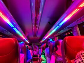 Der Guide stand am Hafen mit einem Schild mit Firmenlogo vor den Aida Tourenbussen. Die Tour selber fand in einem Bus mit 16 Teilnehmern statt. Oftmals hatte jeder eine zweier Reihe alleine und somit einen Fensterplatz. Manche Paare saßen aber auch nebeneinander. Es gab einen Fahrer sowie einen deutschsprachigen Guide (er hat deutsch studiert, ein Jahr in Deutschland verbracht und war sehr gut zu verstehen).