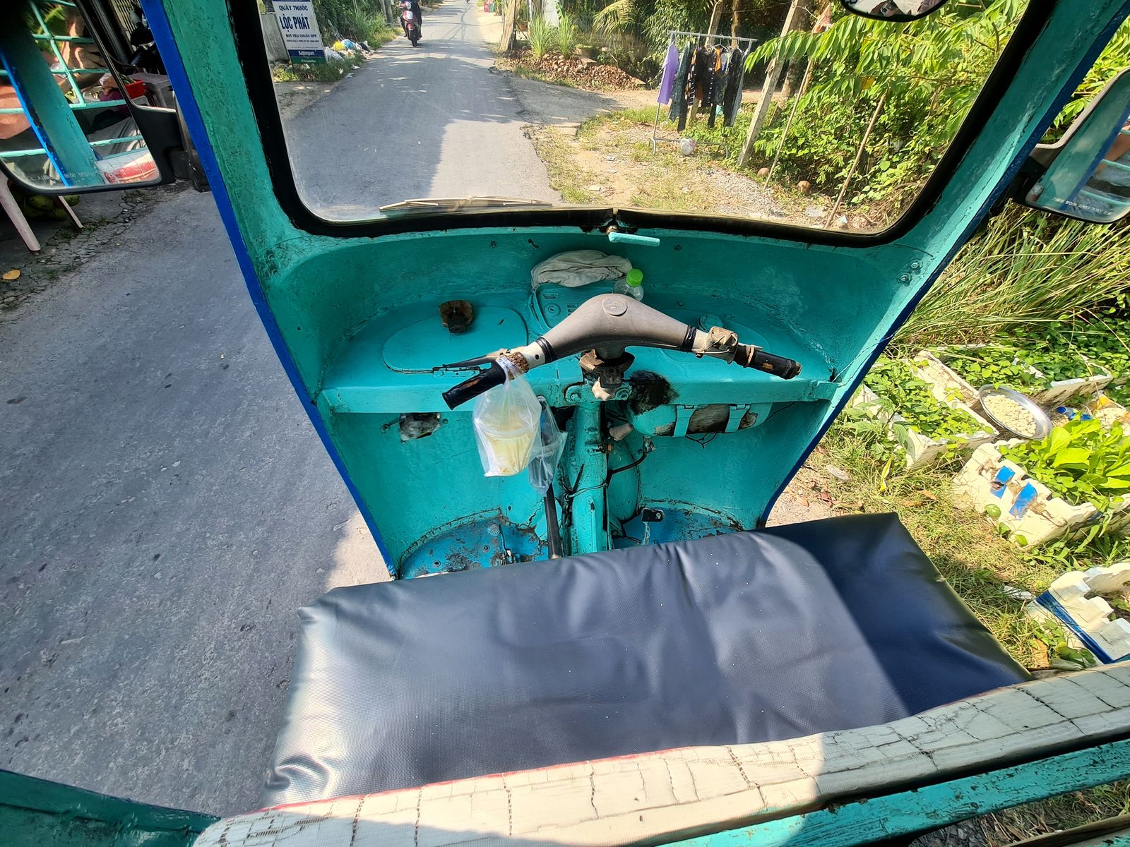 Zunächst führte unsere Tour zum Mekong Delta. Unterwegs wurde eine kurze Toilettenpause eingelegt sowie an einem Tempel gehalten. Beim Bootsanleger am Mekong Delta waren ebenfalls Toiletten vorhanden. Hier gab es auch Souvenirverkäufer. Die Preise waren besser als z.B. in HCMC oder unterwegs. Man konnte auch verhandeln. Viel Zeit für Souvenirs blieb allerdings nicht. Es ging direkt auf ein motorisiertes Boot. Schwimmwesten mussten angezogen werden. Auf dem Boot wurden wir mit frischen Früchten sowie einer Kokosnuss versorgt. Nach einer Fahrt von ca. 20-30min stiegen wir in ein kleines Ruderboot um und fuhren ein kurzes Stück (vlt 10min) durch einen Mekong Ärmel.