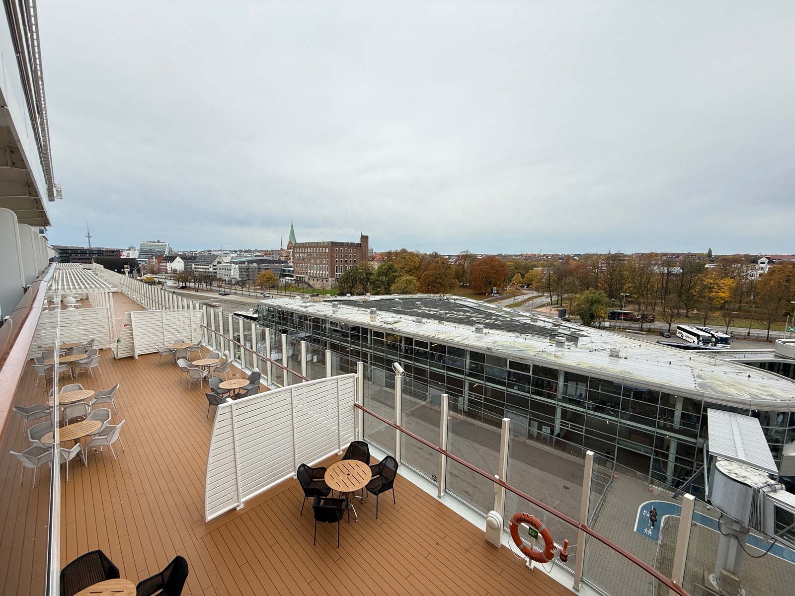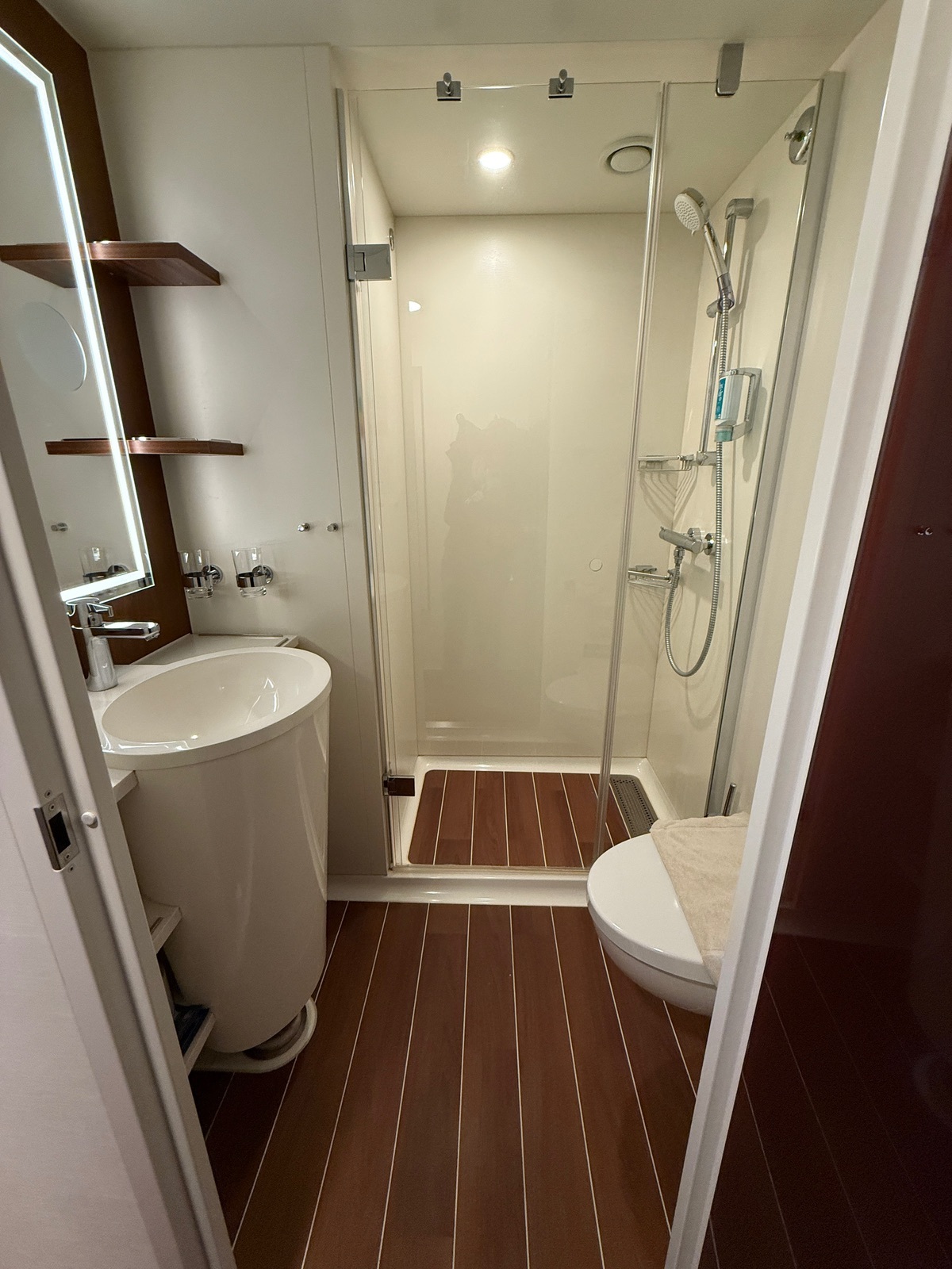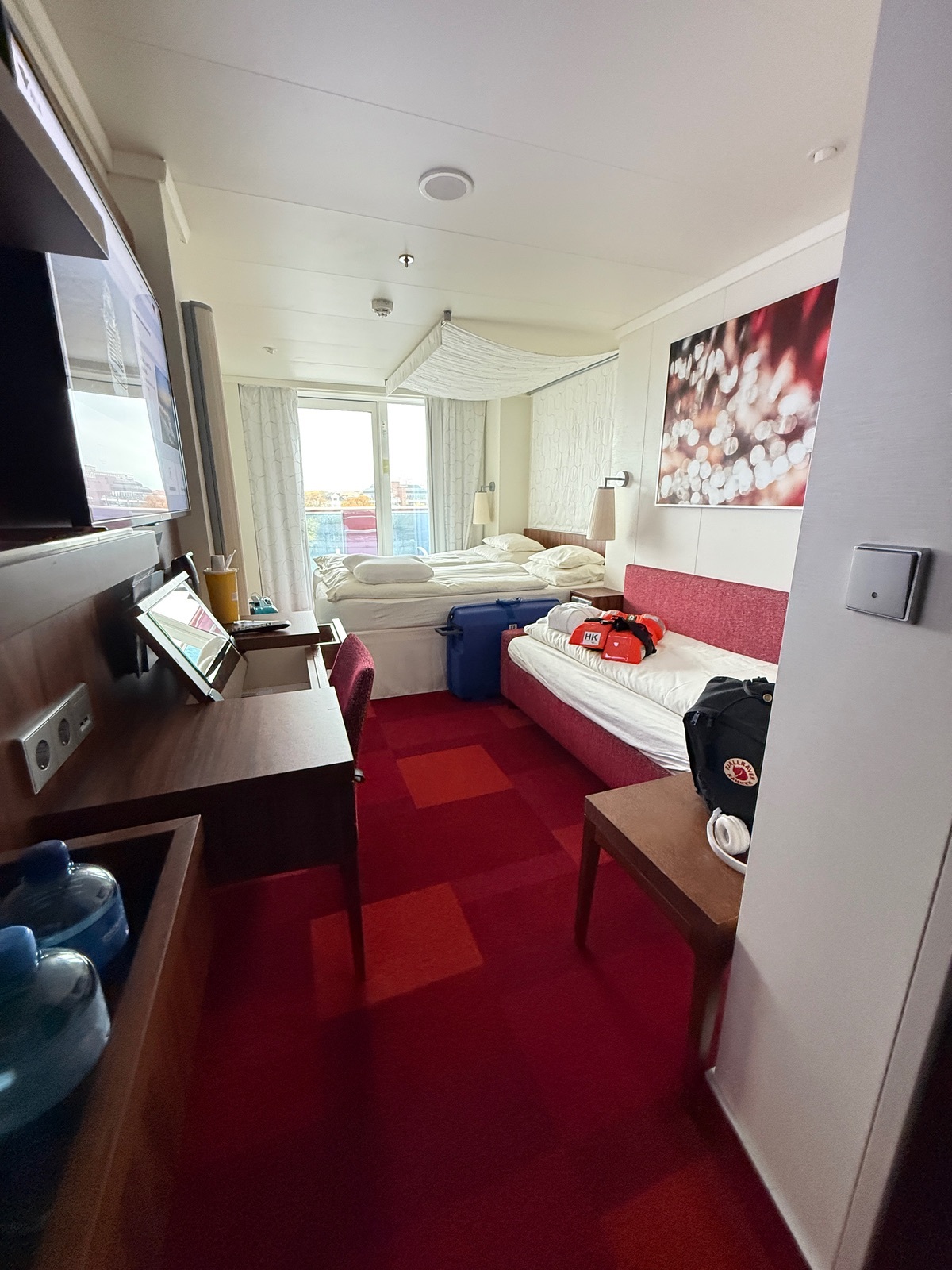 Die Kabine liegt über der Eisbar und man hört am Morgen, wenn draußen auf dem Deck die Stühle eben dieser Eisbar aufgestellt werden. Ca. 7:00 Uhr geht’s los. Für uns kein Problem, da wir sowieso Frühaufsteher sind und unsere Teenie Tochter wie ein Stein schläft 😅.