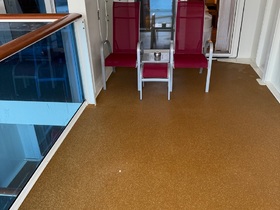 Zur Kabine gehört ein großer Balkon ( siehe Foto ) ausgestattet mit 2 Stühlen und Hocker. Warum nur 2 Stühle bei dieser Balkongröße erschließt sich nicht. Die Kabine ist eine drei Personen Kabine.