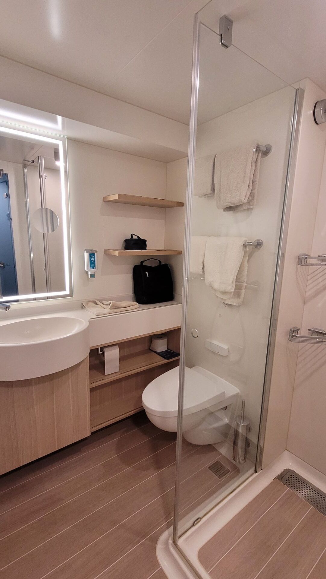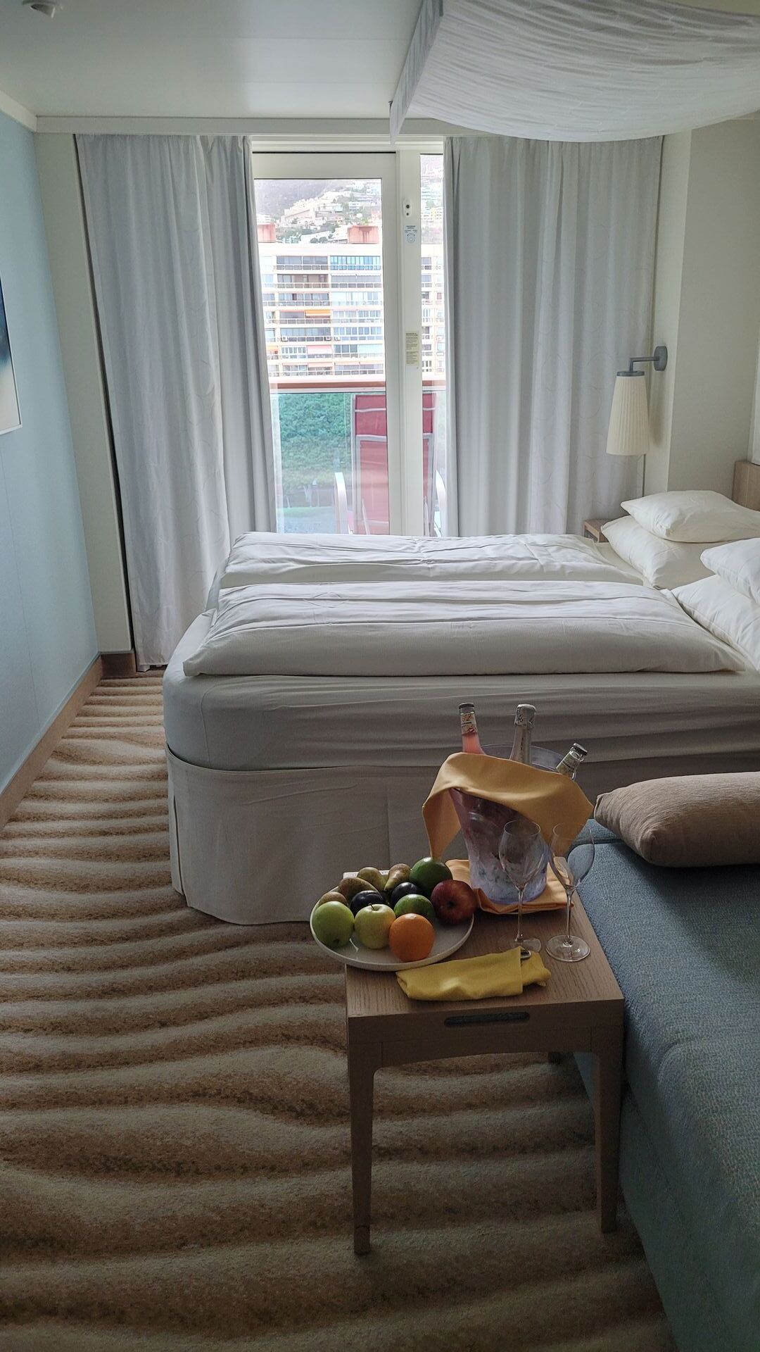 Schöne Balkonkabine im vorderen Bereich Backbord. Kabine und Bad ausreichend groß. Steckdose nur am vorderen Bett, zwei Weitere am Fernseher. Der Balkon ist sehr klein, war uns aber bekannt. Liegt nah am vorderen Treppenhaus, war für uns perfekt