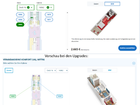 Unterschiedliche Kabinenvorschau vor und nach der Buchung