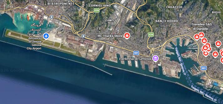 Der Flughafen liegt in Sestri Ponente. Rechts in dem Kreisel ist das Cruise Terminal. Ich würde das Best Western Porto Antico empfehlen.